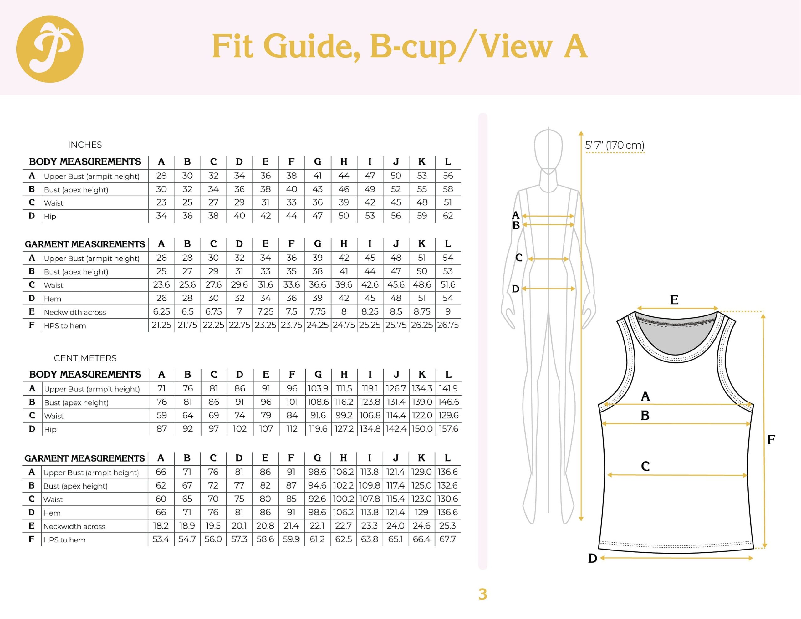 Choose View A if your upper bust and full bust have a 2" (5cm) difference. Choose View B if your upper bust and full bust have a 4" (10 cm) difference.