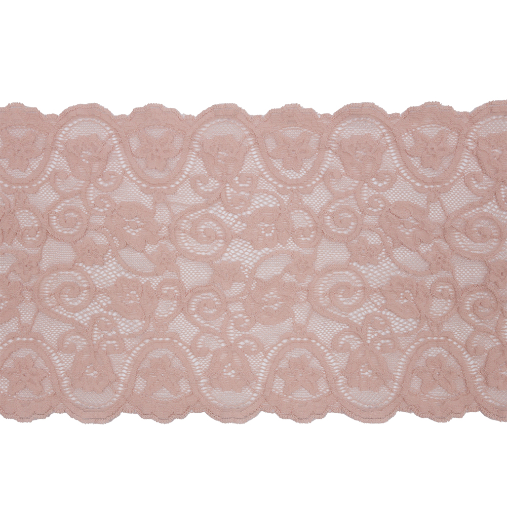 Blush Floral Scrolls Stretch Lace Trim with Scalloped Edges - 6.25"