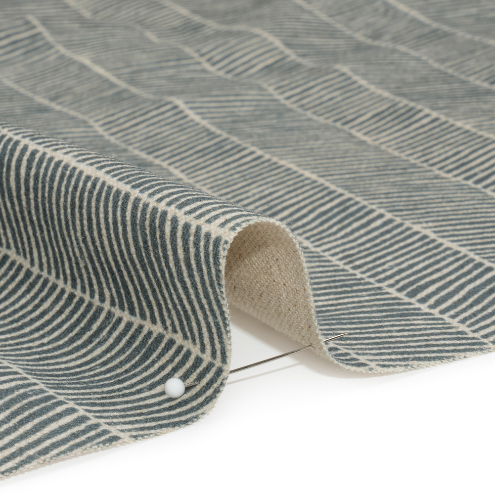 With a blend of linen and cotton fibers, this Indigo Painterly Herringbone Brushed Canvas offers a soft hand and semi-structured drape. The print features painterly indigo stripes covering a beige background in a herringbone pattern.Suggested Projects: Drapes, Valances, Light Upholstery, Tote Bags, JacketsContent: 85% Cotton, 15% LinenStretch: NoneOpacity: Semi-TranslucentBring a dynamic pattern into your home with this fabric! The artist in you is drawn to canvas, a versatile fabric that presents itself like art, curating ease and refinement in your home. The natural fibers are brushed to exaggerate their best qualities, leaving the hand wonderfully soft with just a slight hint of dryness—as expected from cotton. It is relatively lightweight, features a malleable drape, and is semi-translucent; a lining may be desired for added opacity.Canvas isn't just about being the perfect fit for your interior aesthetic; it's renowned for its durability as well. Here are two tips for sewing this timeless fabric: Heavy-duty thread and needles work best with thicker textiles.As always, test on a scrap. You may need to adjust machine settings and stitch length.
