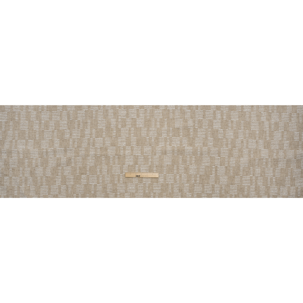 Get your head out of the clouds, this Cloud Slubbed Lines Upholstery Woven is for real! Thick white yarn bubbles from the pebbly beige background in horizontal lines of differing lengths.