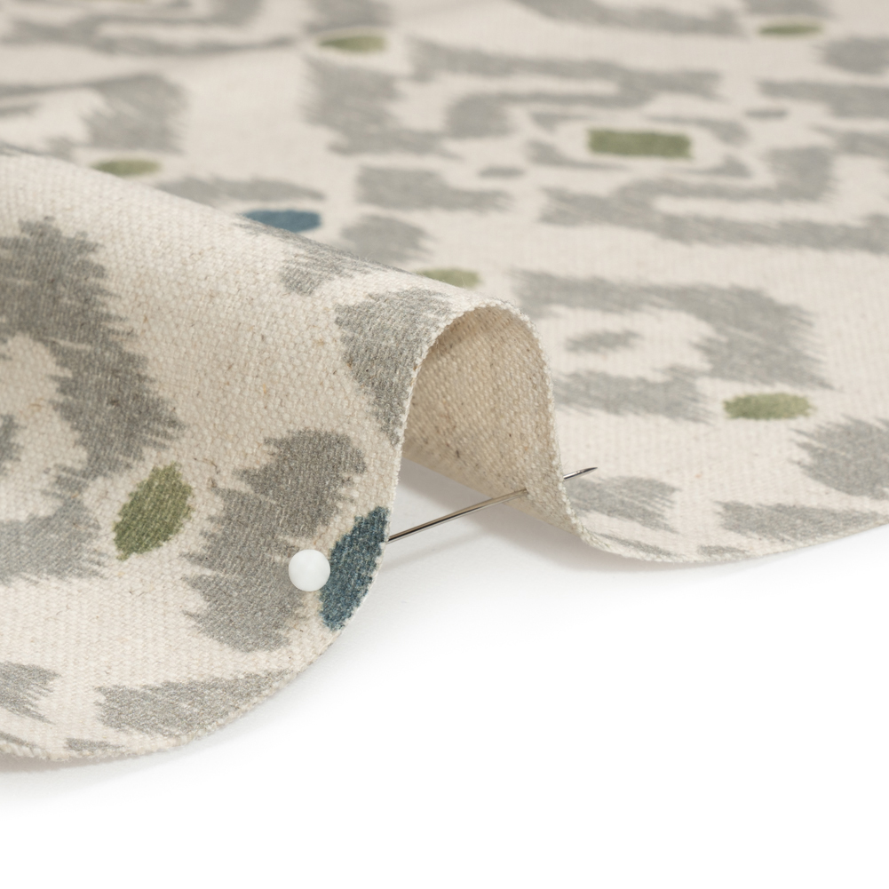 Cotton and Linen Canvas Print - Olive Ikat Geometries - British Imported