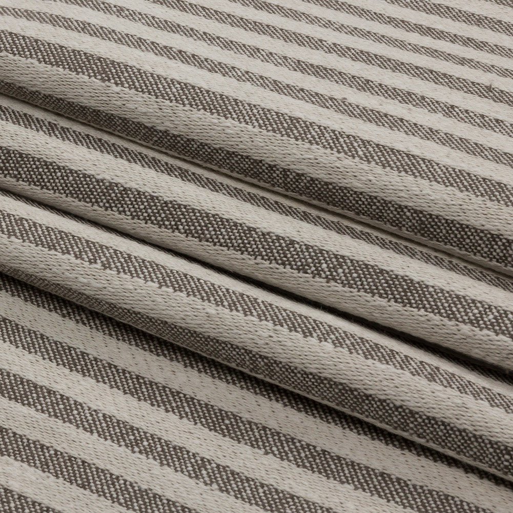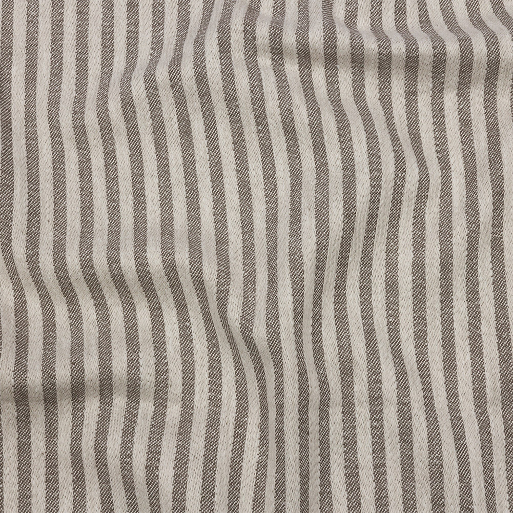 This British Imported Smoke Raised Stripes Cotton and Polyester Woven is perfect for any interior decor, as it has a classic look with modern durability.