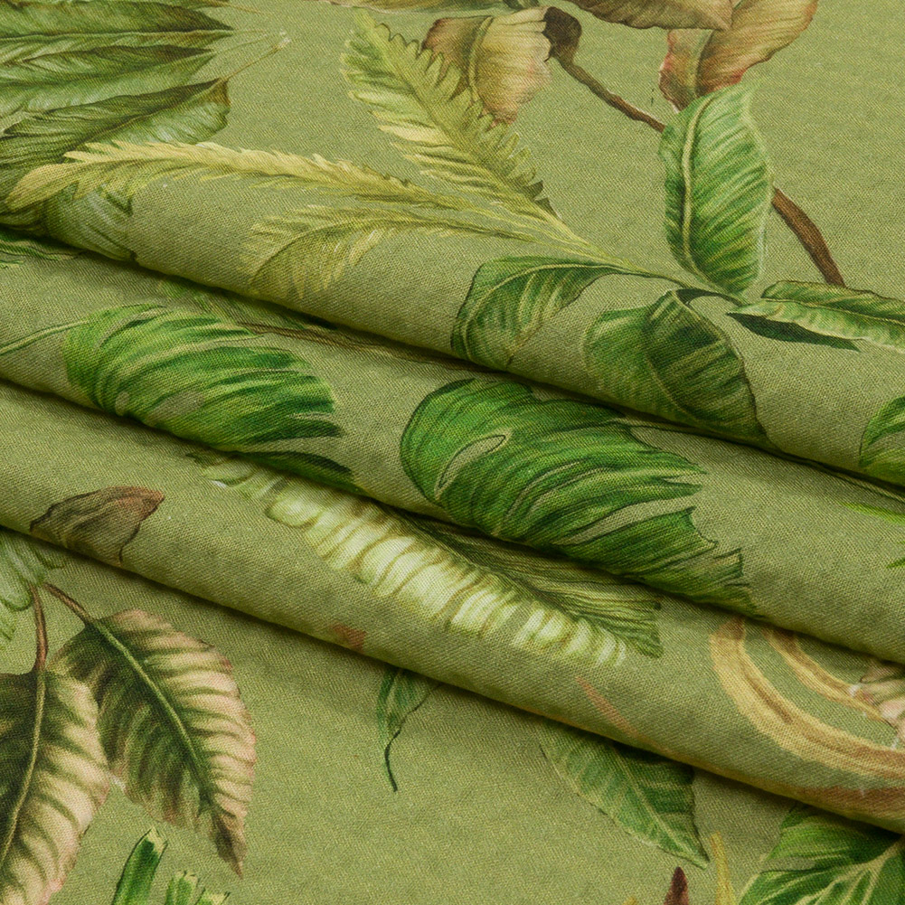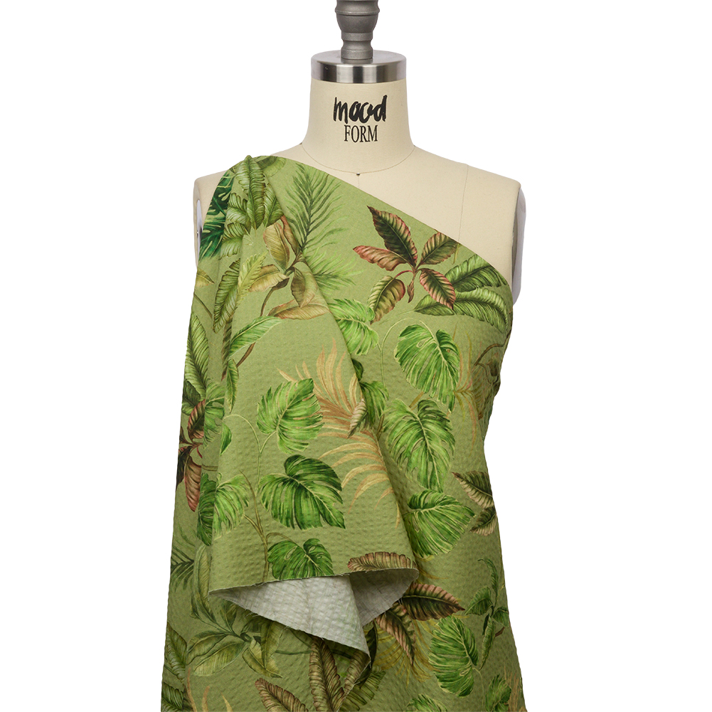 Cotton and Viscose Striped Seersucker Print – Green Leaves – Mood Exclusive Tropic Royale