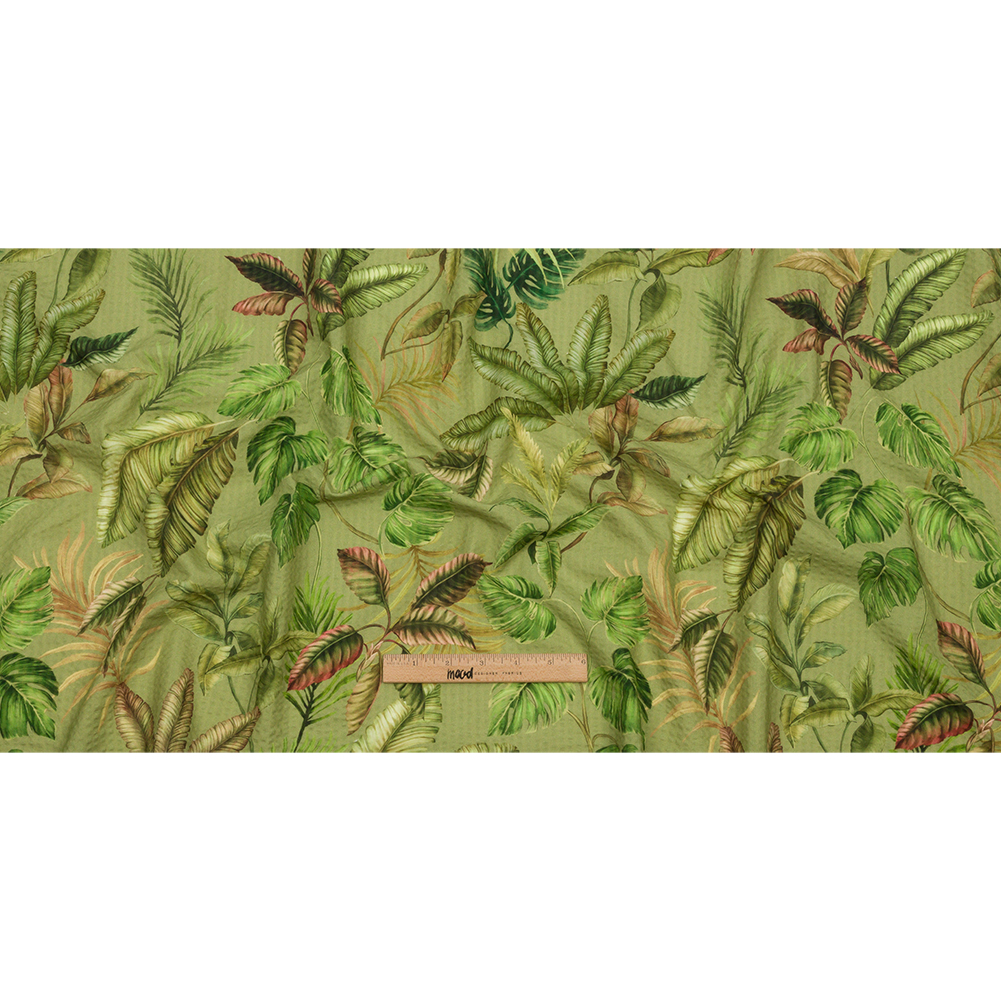 Cotton and Viscose Striped Seersucker Print - Green Leaves - Mood Exclusive Tropic Royale