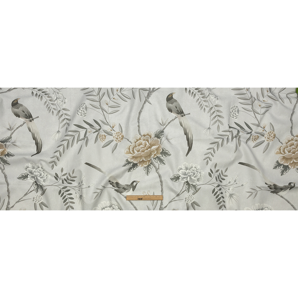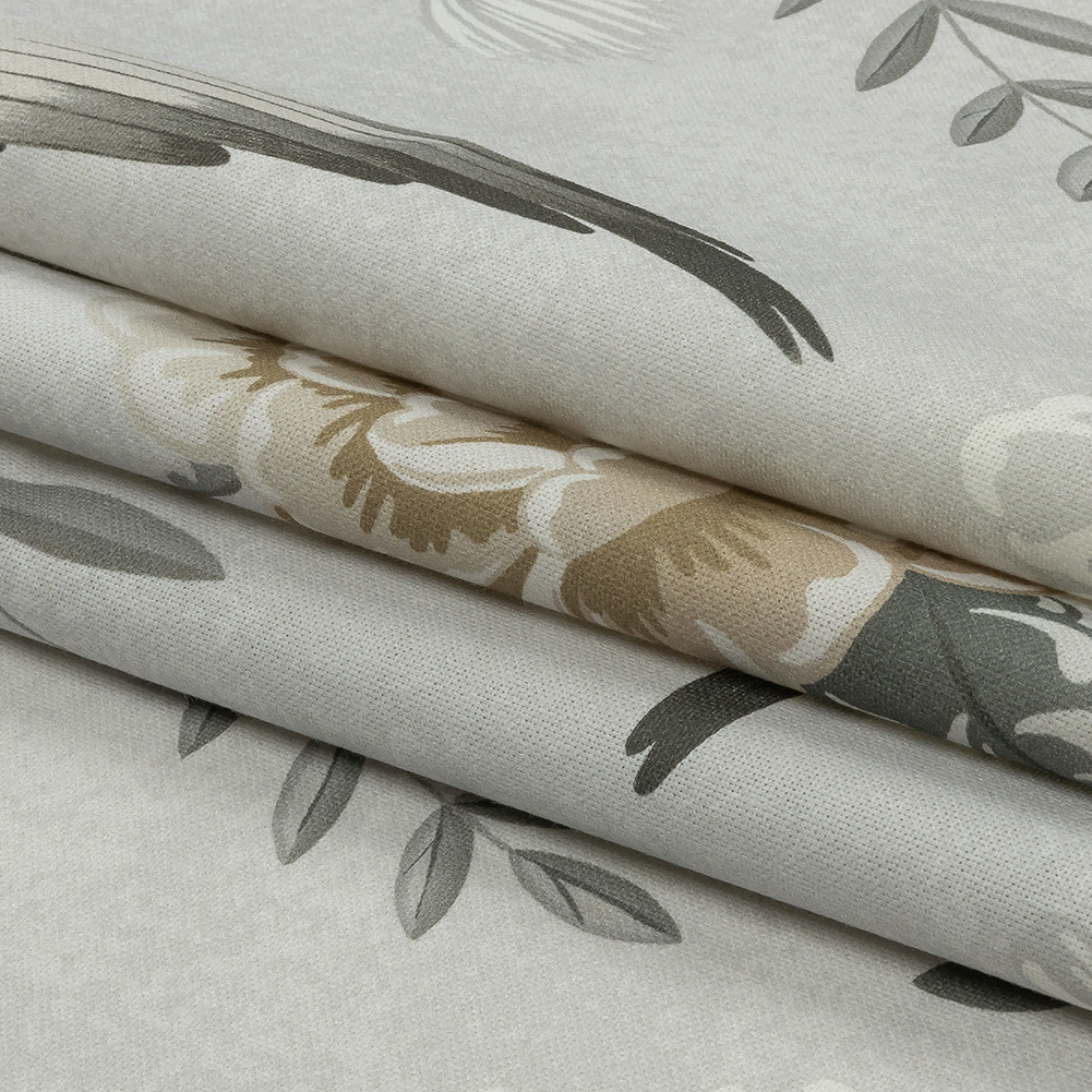 The doves are singing the praises of this British Imported Dove Birds in the Garden Printed Cotton Canvas. Gray and golden brown flowers and gray-brown birds on delicate leafy branches explode across a softly speckled pale gray background, with the canvas fabric offering a crisp hand. With a malleable, structured drape and no stretch, it's perfect for everything from fun curtains to light upholstery like pillows and wall hangings, and even for some fashion projects, like bomber jackets and tote bags! Mostly opaque, a lining is optional.