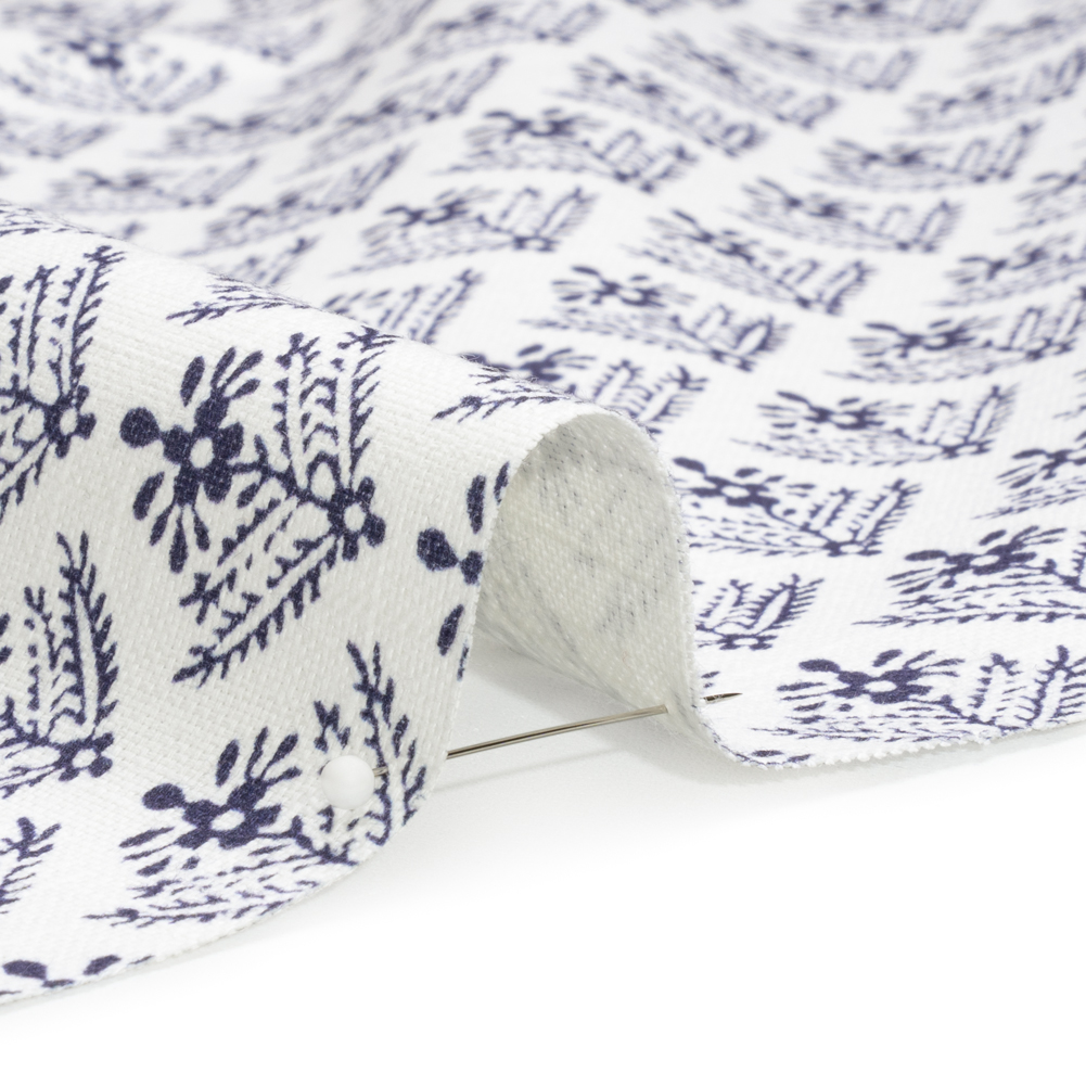 This British Imported French Navy Flowering Ferns Printed Cotton Canvas creates a welcoming space for family gatherings and parties with friends. The deep indigo floral motif is inspired by quilted patterns of the past and quaint middle-America cottages, casting a cozy charm over your living rooms, kitchens, and dining rooms. Amplifying this organic feel, the hand is slubbed and dry, thanks to the 100% cotton content. With a malleable drape, you can create long curtains, valances, and light upholstery projects. Slightly translucent: a lining may be desired for added structure and opacity.