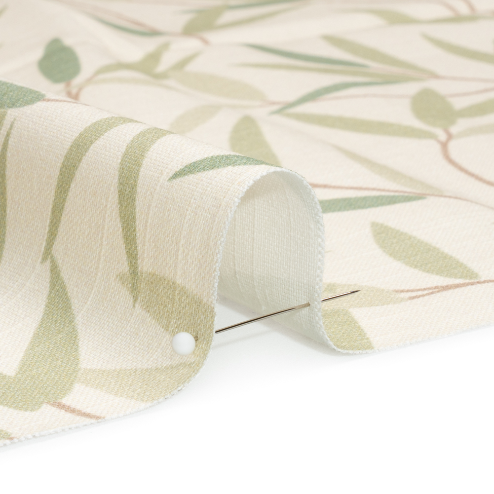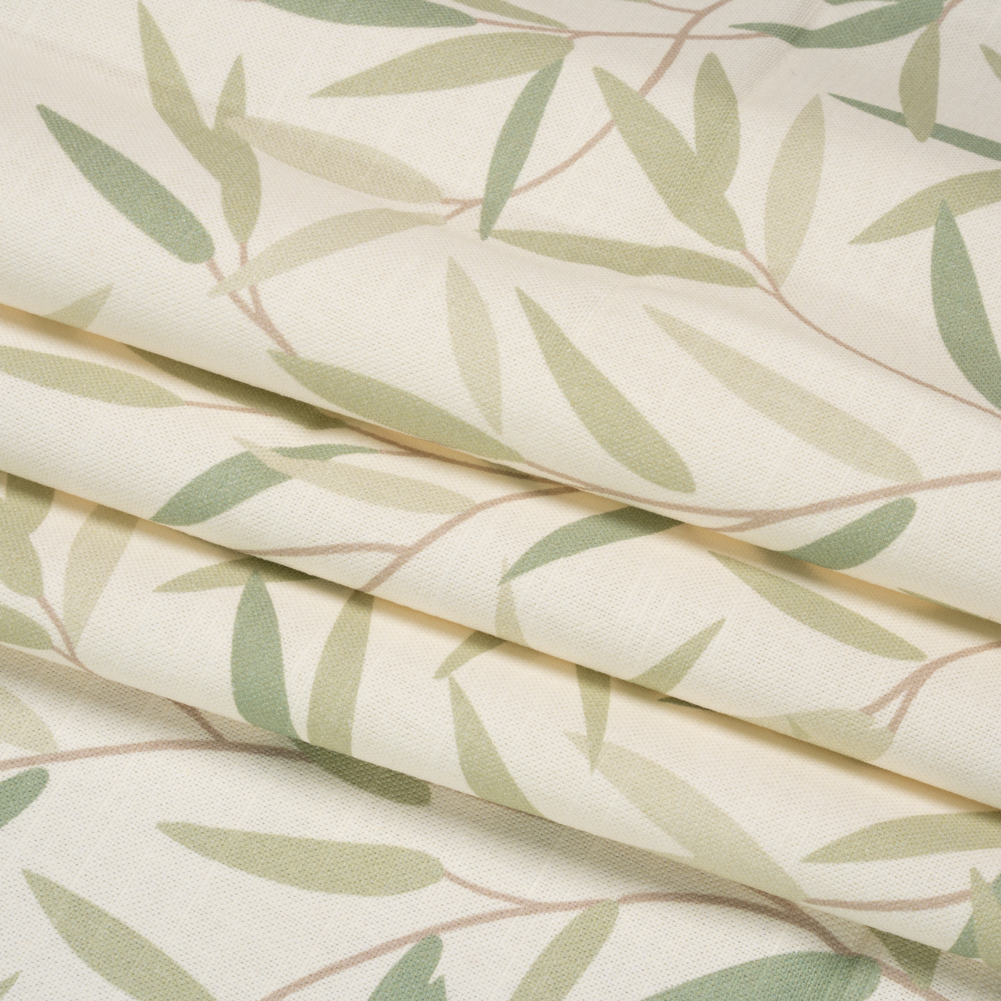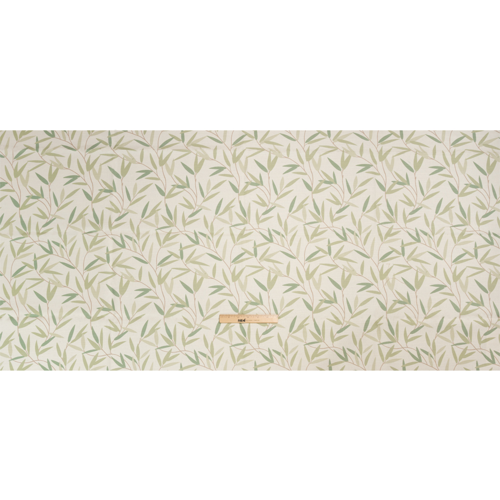 Find inspiration among the branches of this British Imported Hedgerow Willow Leaves Printed Cotton Canvas, featuring green leaves growing madly across a cream sky. Printed canvas fabrics sway between rustic and refined, offering their dry hand and slubbed face to formal dining rooms, lived-in family rooms, and everywhere in between. Fairly lightweight and featuring a malleable drape, this fabric is perfect for curtains and light upholstery projects like throw pillows and ottomans. Plus, its versatility reaches your wardrobe—consider tote bags and structured jackets, too! A lining may be desired as it is semi-transparent.