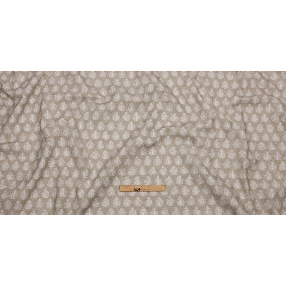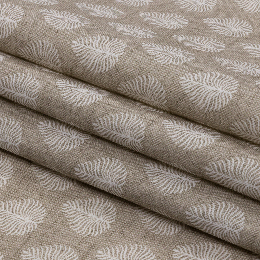 Use our British Imported Indigo Leaves Printed Cotton Canvas to create a tropical and timeless look. White palm leaves are printed across a soft yet slightly tactile face. A weave of cotton and linen produces a variation of beige hues and the appearance of slubs, adding to the overall ease that this tropical, lightweight fabric exudes. The malleable drape yields beautiful valances, and long-hanging curtains. Upholster cushions on wicker sofas and chairs, bar stool seat covers, and more! Mostly opaque, a lining is not necessary for most projects.