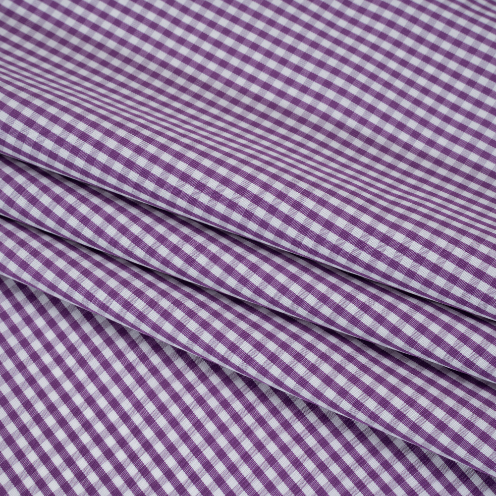 From picnic to pitch, this Purple and White Checked Cotton Gingham Shirting is ready to support you in all your endeavors—featuring a cool, crisp hand and breezy drape.