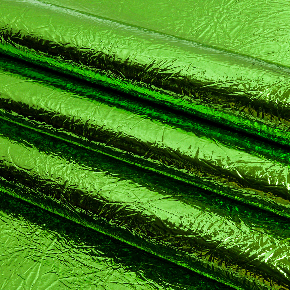 Crinkled Mirror Vinyl with Fabric Backing – Green – Ingot Collection