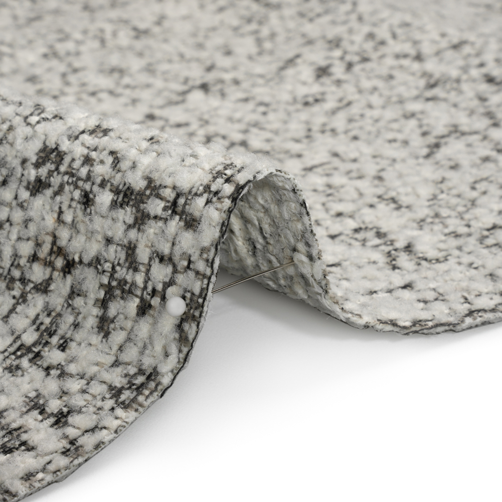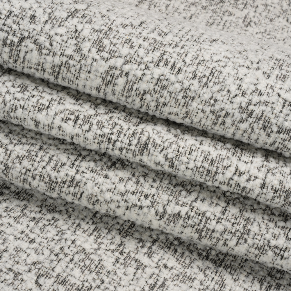 In a classy colorway and iconic texture, this Crypton Stone Polyester Tweedy Upholstery Boucle introduces an elevated style into your home. White looped yarn rises from a dark gray and black background. Combining the look of a tweed and the irregular texture of a bouclé, this medium-weight fabric brings tactile and visual intrigue to your office, family room, and everything in between. A perfect complimentary texture to a mid-century style, bouclés bring a much-needed dimension to simple pieces, accenting easy arches and lines. Durable, stain-resistant, and comfortable, the style and functionality of this fabric are timeless. With its malleable drape, you can easily reupholster the nooks, crannies, and curves of armchairs, sofas, ottomans, and more!