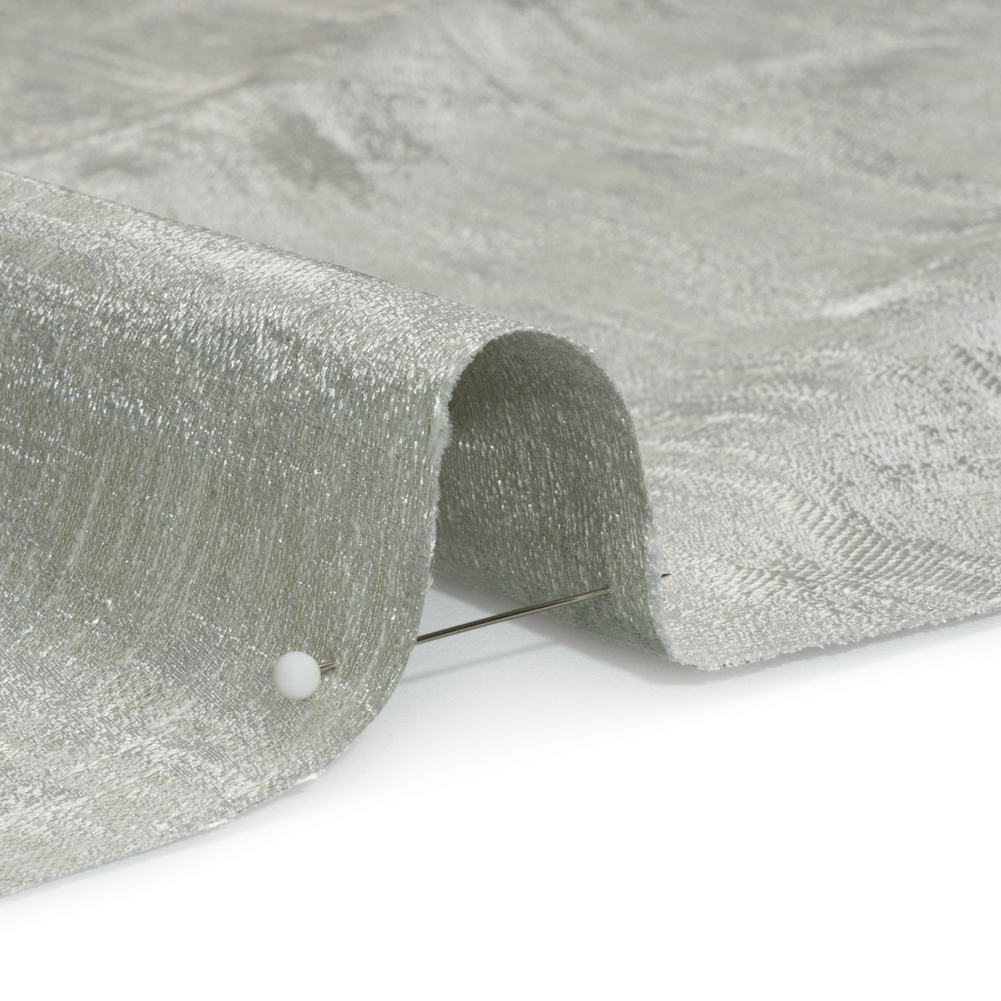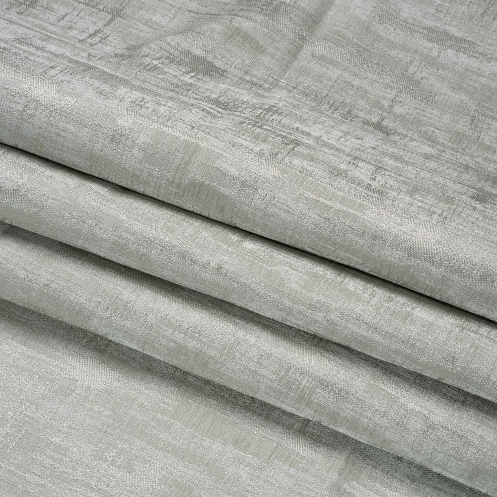 Bring a hint of color into your home with this British Imported Sage Abstract Distressed Drapery Jacquard. The marriage of texture irregularities and subtle discoloration gracefully crafts a distressed appearance across its sophisticated pale sage face. The intricate, dimensional weave of the Jacquard promises an elegant touch, while its malleable drape and lustrous face elevate the ambiance of any room. Whether drawing your eyes upward with long, pooling drapes, infusing brilliance into formal dining and living spaces, or creating an ethereal atmosphere by pairing it with sheers, this fabric radiates timeless sophistication. Mostly opaque, it may benefit from a lining for added sun protection.