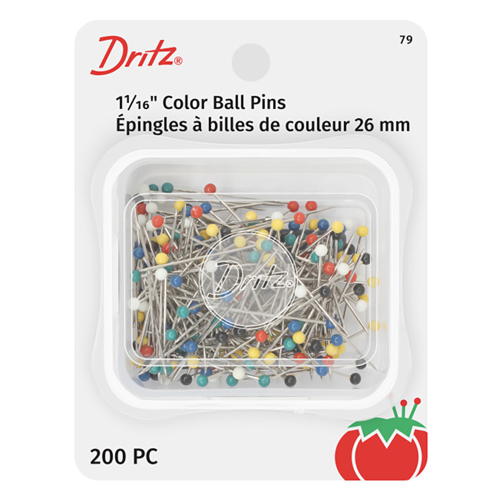 Put a pin in your project worries with these Dritz Color Ball Pins. Each pack includes 200 nickel-plated steel pins—1 1/16” long with assorted color ball heads for easy handling—neatly stored in a reusable plastic box. Perfect for medium-weight fabrics and general purpose sewing, they keep your materials firmly in place for smooth, efficient stitching.