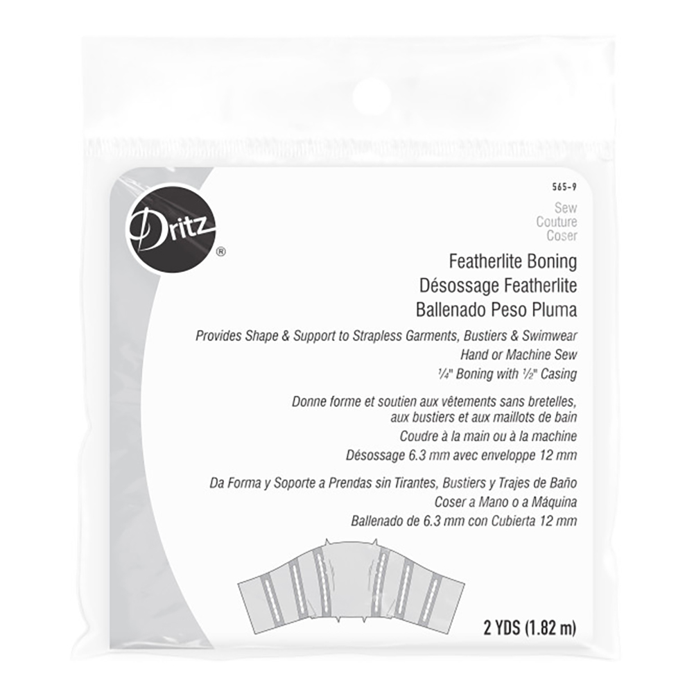 Define clean, structured lines with this Dritz Featherlite Boning with ½” White Casing. This 2-yard roll features ¼” boning encased in ½” white casing, offering lightweight yet reliable support. Ideal for adding shape and structure to strapless garments and corset-style designs, it’s perfect for bustiers, lingerie, evening gowns, theatrical costumes, and more.