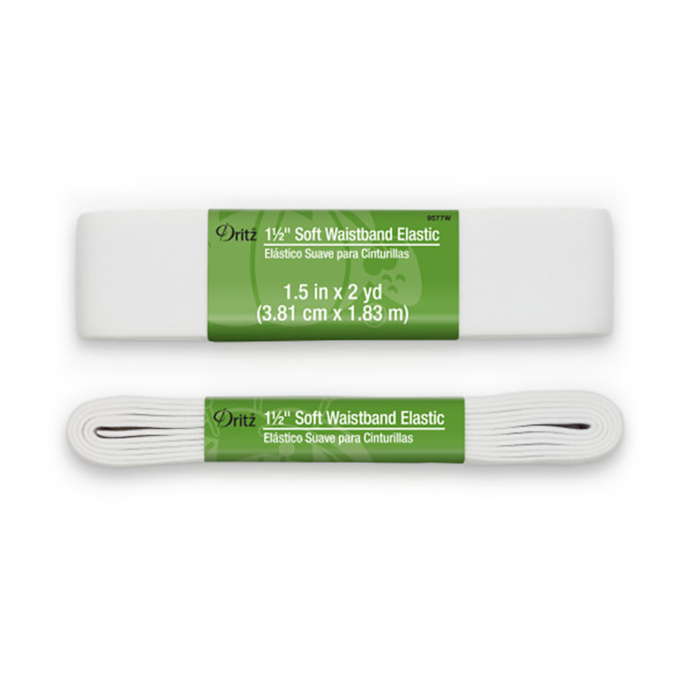 This Dritz 1.5” Soft White Waistband Elastic won’t go to waist. Measuring 1½” wide and 2 yards long, this elastic features a soft hand, comfortable stretch, and bright white hue. Naturally resistant to rolling and twisting, it’s an excellent choice for waistbands on skirts, pants, and shorts.
