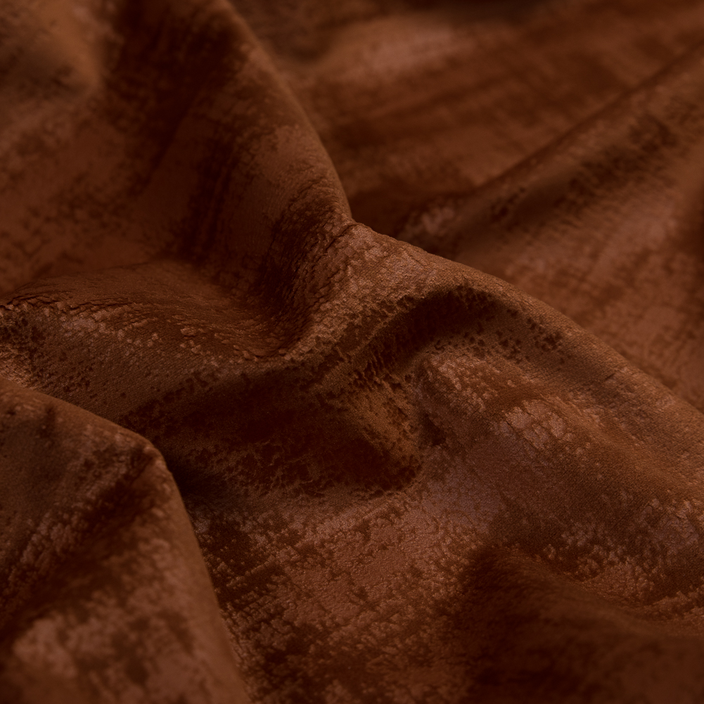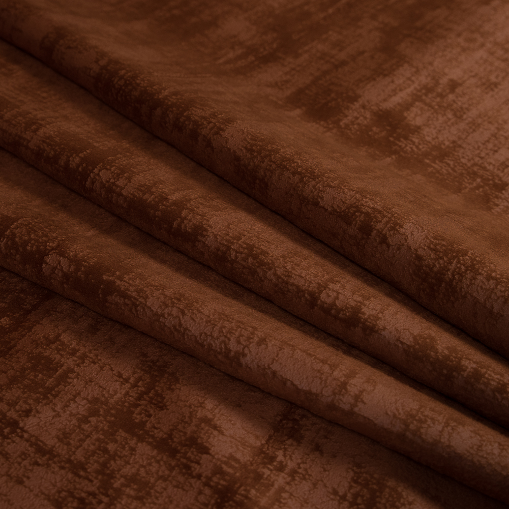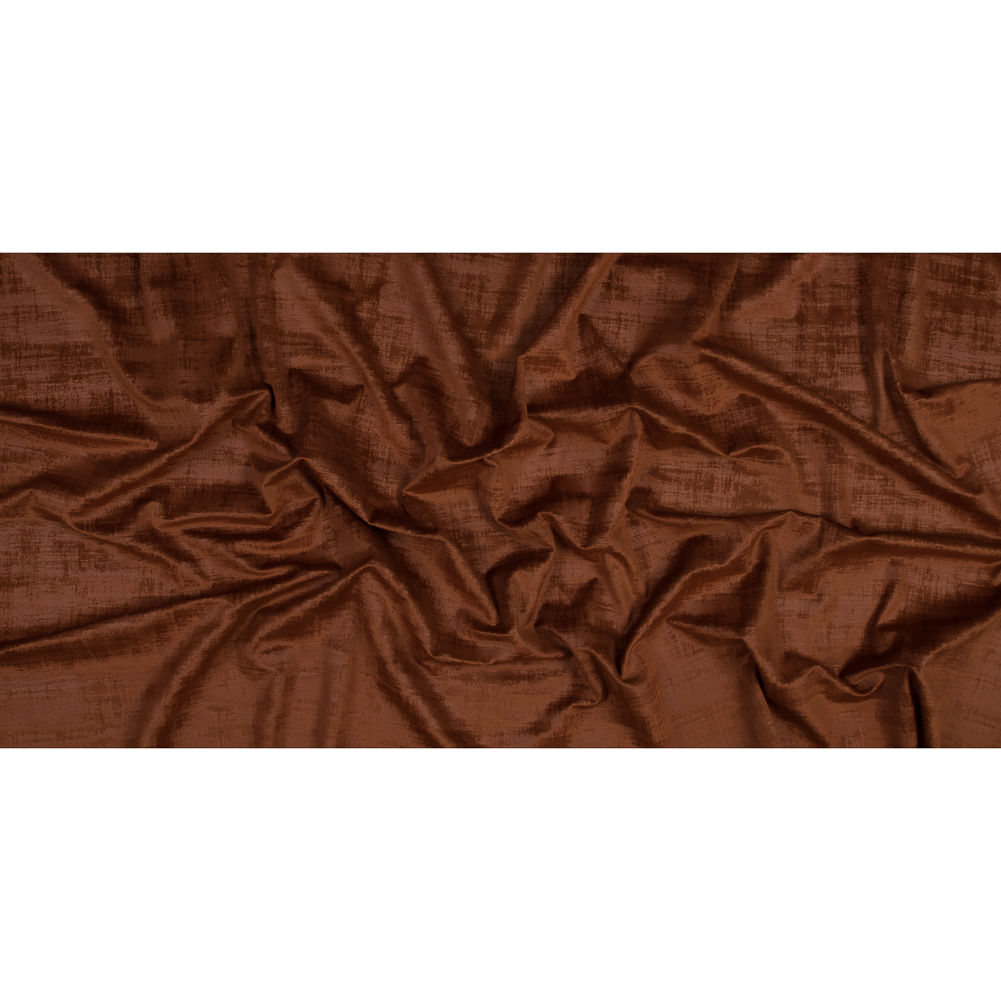 The rustic color of this British Imported Saffron Embossed Textured Velvet will give any home a retro look. The ultra soft velvet has a beautiful sheen that showcases an abstract embossed pattern throughout. From upholstery to drapery applications, fill your home with tactile delight. From couches to ottomans to full-length drapes, add it to living spaces, bedrooms, and dining rooms. Thin with a heavy weight, note that the velvet is completely opaque. This stunning collection comes in 32+ colors, so you are sure to find one that suits your decor theme! Note that these products take upwards of a week to process and ship. This fabric in particular can be machine washed on cold and ironed on the lowest heat setting. Do not bleach or tumble dry this material. This fabric can be dry cleaned with any solvent except tetrachlorethylene.