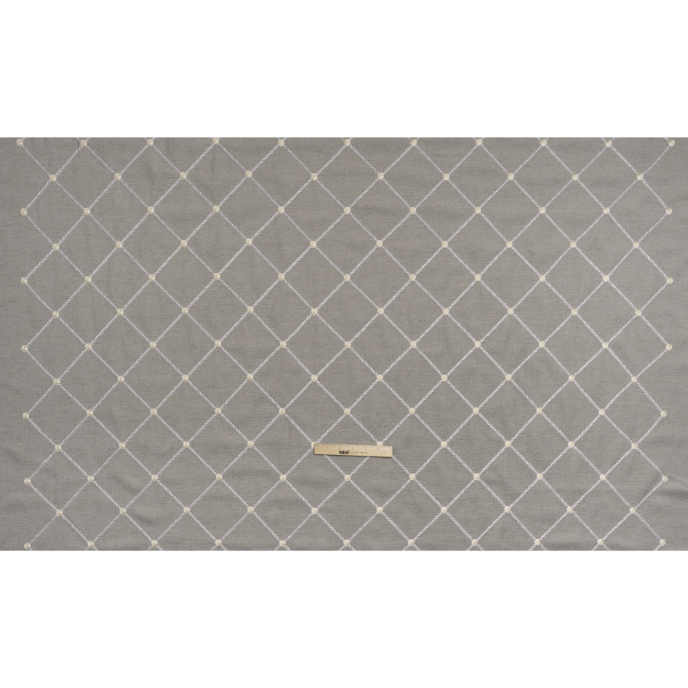 Embroidered Linen Blend Woven - Chinchilla Roses and Diamonds - Tioga Collection
