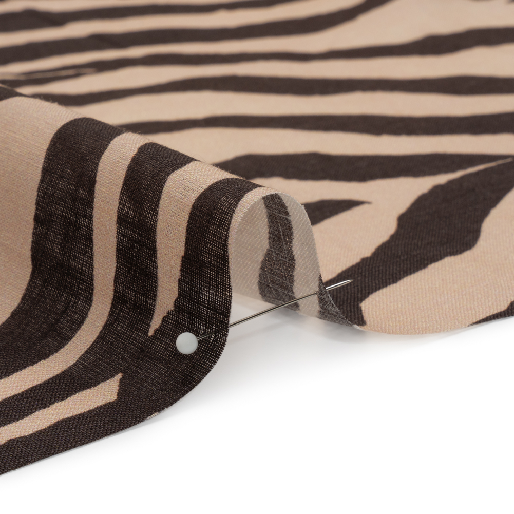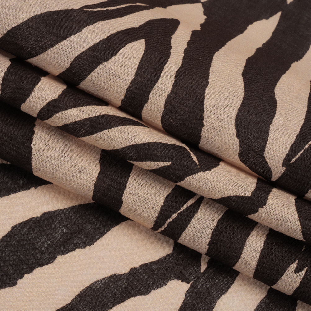 Unleash your wildest creations with this Famous Australian Designer Beige and Brown Zebra Stripes Lightweight Linen Woven.
