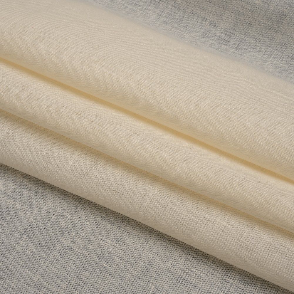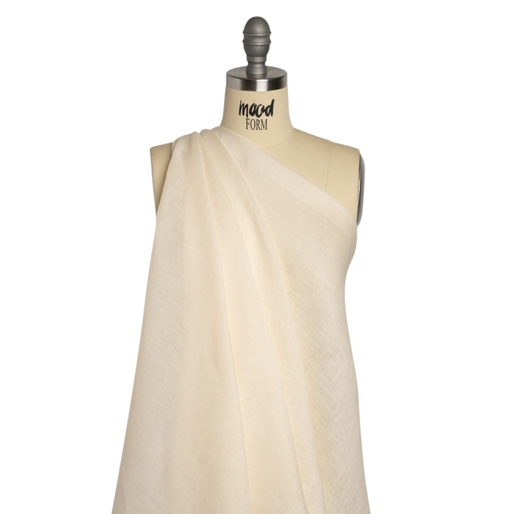 This Famous Australian Designer Cream Lightweight Linen Woven chooses simplicity. The cream fabric displays a subtle luster across its slubs, falling with a lightweight, supple drape. Translucent, a lining may be desired.Derived from the flax plant, linen is a natural fiber that is breathable and lightweight, making it an ideal companion for hot and humid months. The fabric's textured charm, defined by a pebbly touch and discreet slubbing, effortlessly evokes an easy-going vibe, infusing closets with the essence of beach waves and sun rays. Whether embraced in minimalist maxis or wide-leg pants, linen sends your style on a permanent vacation.