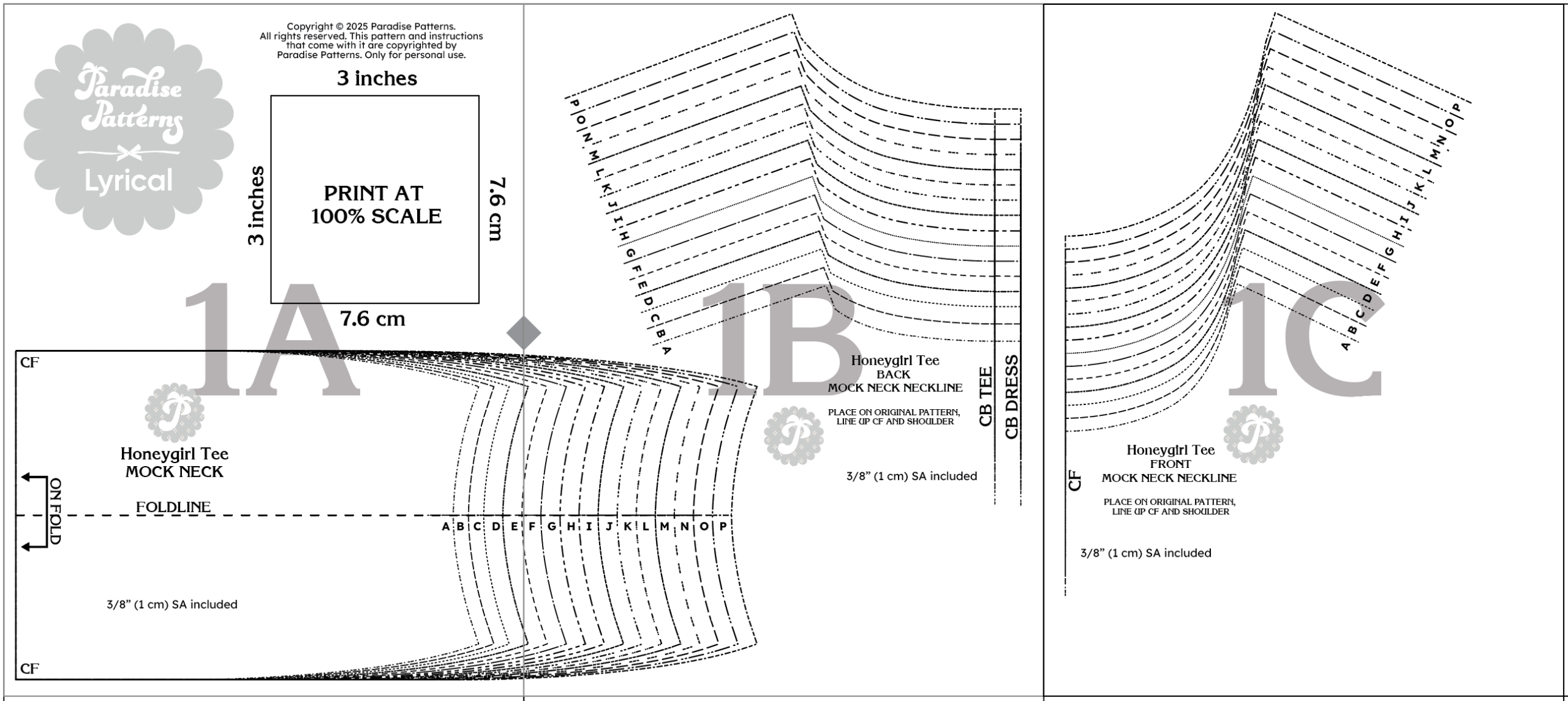 This free pattern expansion includes pieces to make your beloved Honeygirl Tee into a mock neck! This is a PDF with A4/letter and Copyshop options. The print-at-home file is 3 pages.