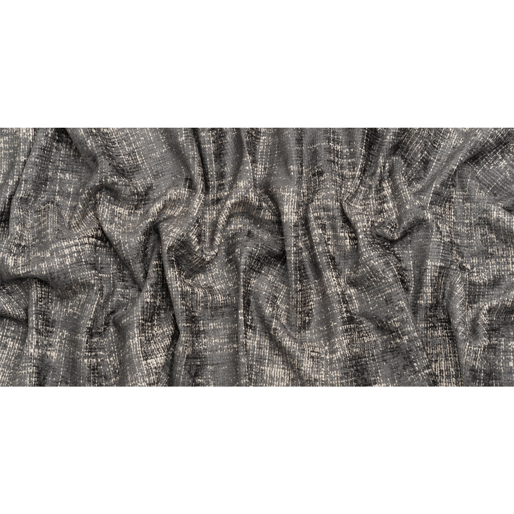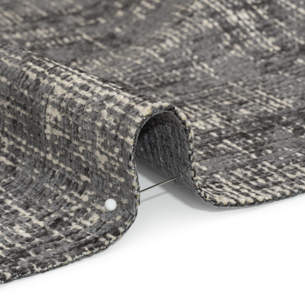 Become the comfiest home on the block with this Graphite Distressed Look Chenille Upholstery Woven! The plush, dark gray chenille yarn is smooth and lustrous, woven with beige and white yarns that bring a distressed look to the face, along with a pebbly dimension to the hand. Wonderfully supple, this fabric is perfect for cozying up your armchairs, sectionals, and throw pillows. A lining may be desired for added structure and durability.Derived from the French word for caterpillar, chenille promises to create spaces that welcome comfort and display elegance. To master this unparalleled texture, our professional sewists suggest using a walking foot to prevent slippage, testing your tension setting on scraps before you begin, and using the sharpest scissors, rotary blades, and needles.