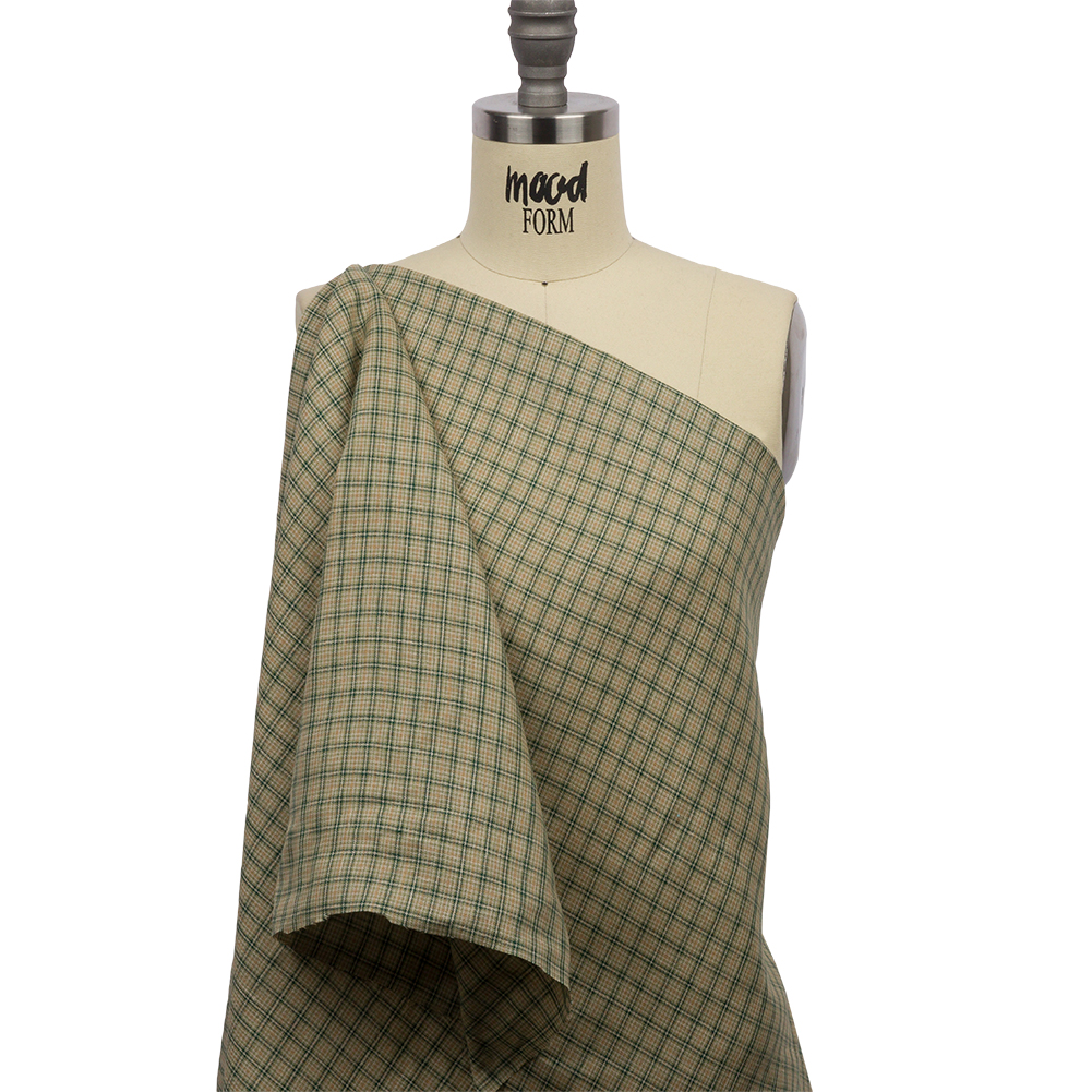 The luck of the Irish is on your side with this Green and Beige Checked Lightweight Linen Woven! Dark green is interwoven over an earthy background to create a satisfying plaid pattern, adding intrigue to muted tones. Offering a crisp yet malleable drape and a surprisingly smooth hand, this 100% linen woven is beautifully cool on the skin. Create button-up shirts, blouses, and more! Slightly translucent, a lining may be added for full opacity and a polished finish.
