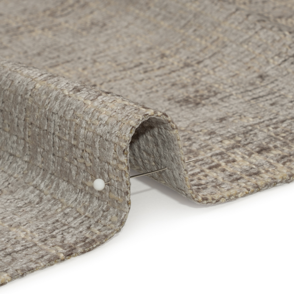 Soften your spaces with this Haze Distressed Look Chenille Upholstery Woven. The plush, silver chenille yarn is smooth and lustrous, woven with white yarn that brings a distressed look to the face, along with a pebbly dimension to the hand. Wonderfully supple, this fabric is perfect for cozying up your armchairs, sectionals, and throw pillows. A lining may be desired for added structure and durability.Derived from the French word for caterpillar, chenille promises to create spaces that welcome comfort and display elegance. To master this unparalleled texture, our professional sewists suggest using a walking foot to prevent slippage, testing your tension setting on scraps before you begin, and using the sharpest scissors, rotary blades, and needles.