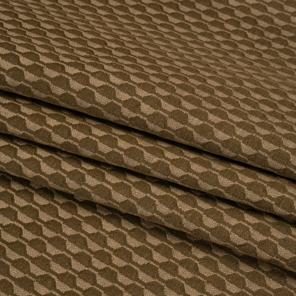 Recycled fibers, geometric patterns, and a sleek but dimensional feel—what more could you ask for from this beautifully complex Honeycomb Stripes Drapery Jacquard?Suggested Projects: Curtains, Valances, Drapes, ShadesContent: 65% Recycled Polyester, 28% Cotton, 7% PolyesterStretch: NoneOpacity: Mostly OpaqueEnvelop your space in the timeless elegance of this eco-conscious Jacquard, which displays embroidered-like honeycombs in pale brown and lustrous copper. The hand is dimensional, soft, and sleek, and the drape is supple and lightweight. Long drapes bring an exciting element to your living spaces, and accent valances constantly deliver sophistication. Though mostly opaque, a lining may be desired for added structure and opacity.