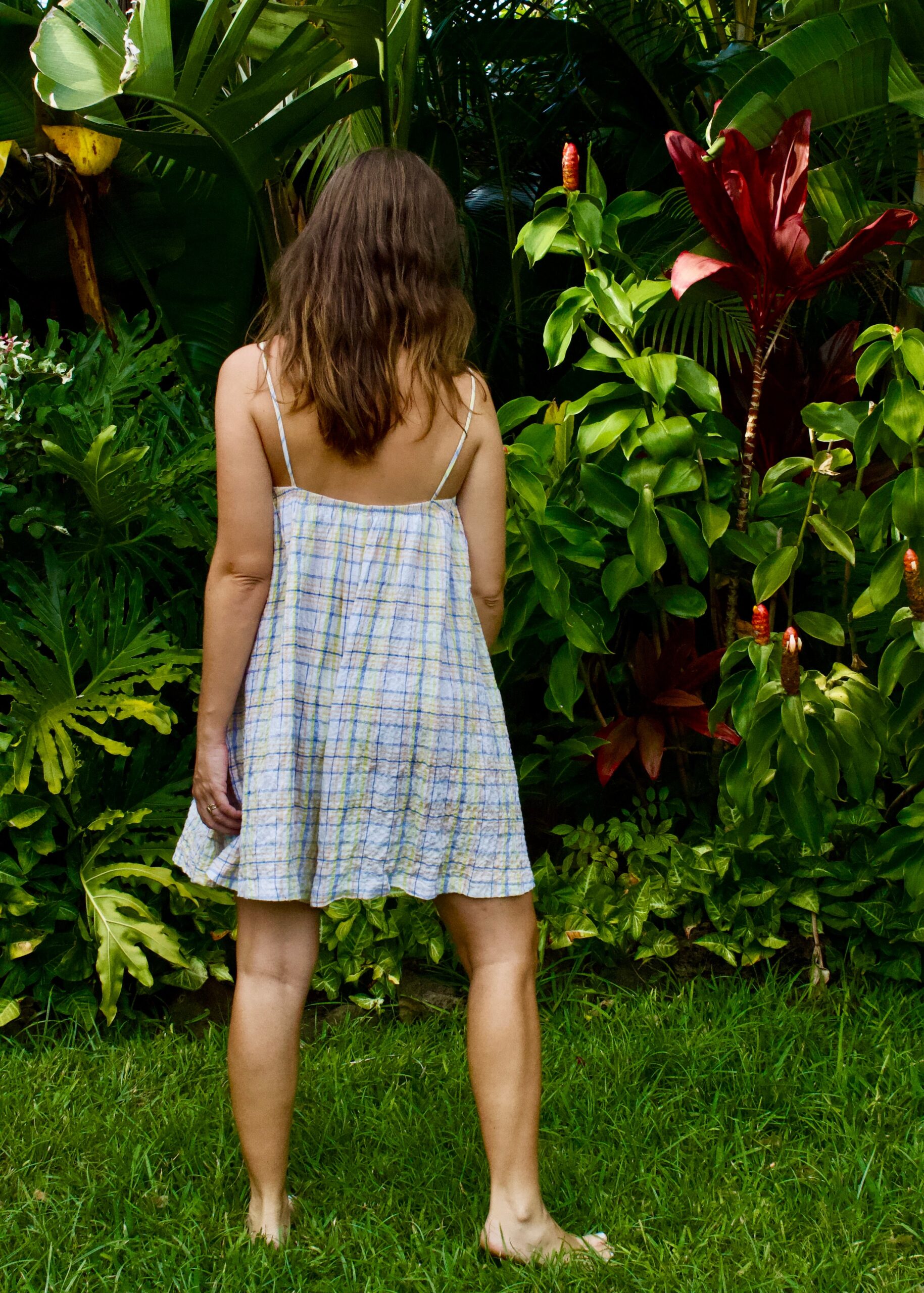 This pattern is made for woven fabrics and feels especially good in a mid-weight linen. Other favorites include seersucker for the ultimate summer feel, cotton poplin for a crisp and billowy silhouette, or any rayon/tencel for a beautiful drape