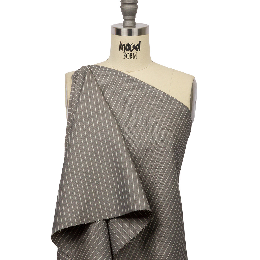 Create professional work attire with this fabulous Italian Gray and White Chalk Striped Cotton Suiting.