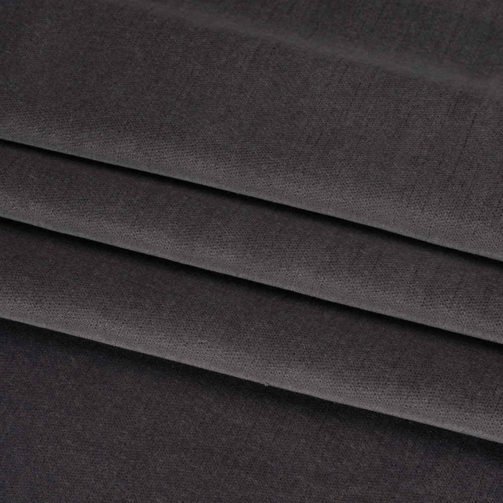Soften your space with this Somerset Pewter Low Pile Upholstery Velvet, displaying a cool dark gray face and a woven reverse.
