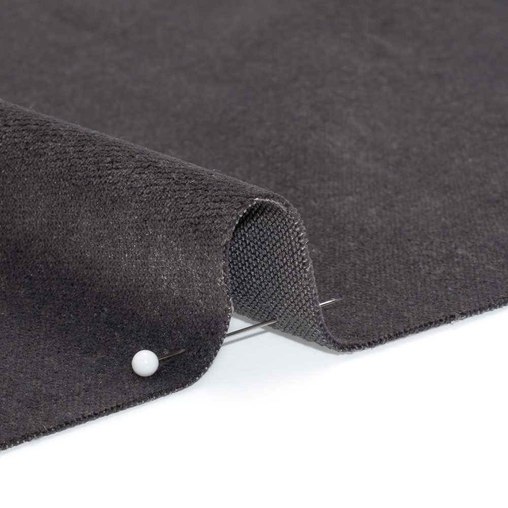 Soften your space with this Somerset Pewter Low Pile Upholstery Velvet, displaying a cool dark gray face and a woven reverse. The short pile, referring to the fiber length, lends itself to a more durable, easy-to-clean textile—with all the majestic sheen and plush feel you could ask for. Its supple drape is perfect for tufted headboards, ottomans, love seats, and more.The presence of velvet is the promise of elegance. With a luxury that has captivated ancient royals to modern designers, this timeless textile turns chairs into thrones and homes into palaces. Here are some sewing tips from our professional velvet experts: Before cutting and stitching your velvet, decide which way your pile is facing and stick with it.Test on a scrap piece first—you may want to adjust presser foot tension and use a longer stitch.Cutting on the wrong (reverse) side will ensure accurate markings.Velvet is slick! Cutting in one layer (with a rotary cutter!) and using a walking foot will prevent slipping; hand basting your seam lines will prevent creeping.