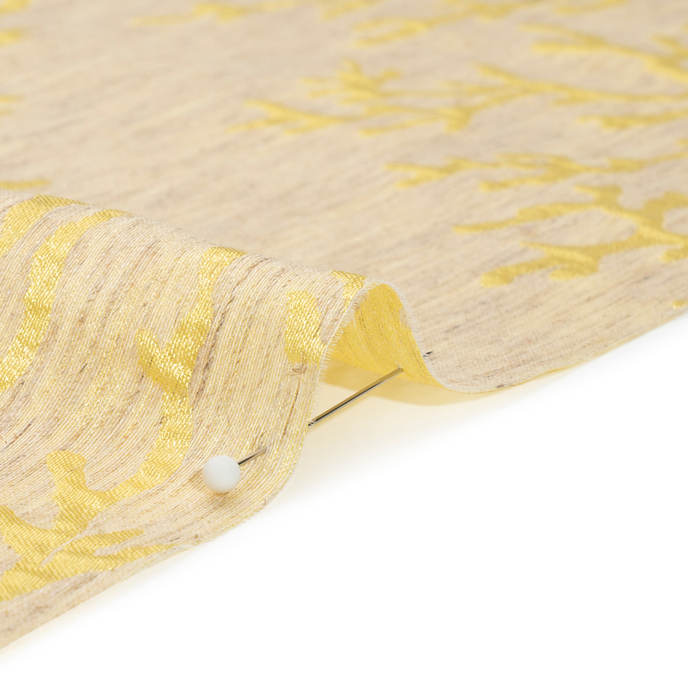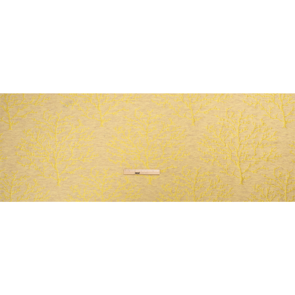 The mid-day sun bounces its bright rays off of this Luminous Yellow and Heathered Beige Winter Trees Lightweight Polyester and Linen Brocade! Shining with a frosty luster, yellow trees stretch their barren branches into a heathered beige background.