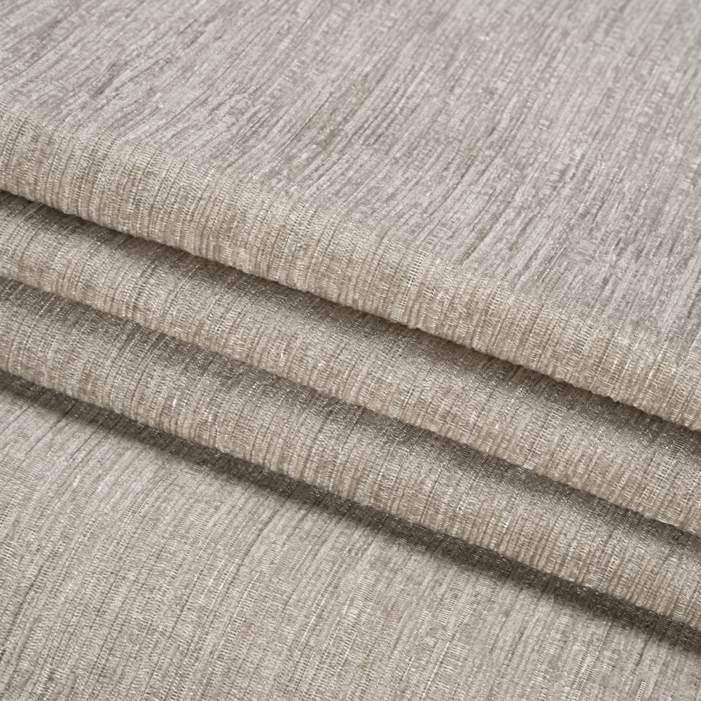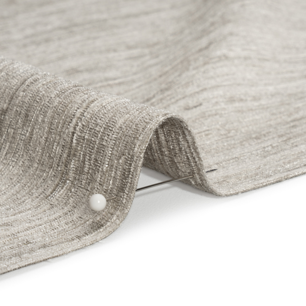 Modernize your space with this Mayberry Cement Striated Luxe Double Wide Chenille. The light gray face is striated, slubbed, and dimensional, tying comfort to luxury with its blend of a plush hand and beautiful luster. Synonymous with cozy gatherings and luxe designs, chenille orchestrates a soft and warm home environment. With a 110” width and a lightweight, malleable drape, tackling major reupholstery projects like sectionals, oversized armchairs, and headboards becomes less daunting. Plus, paired with a lining for complete opacity, create pooling drapes, valances, and more!