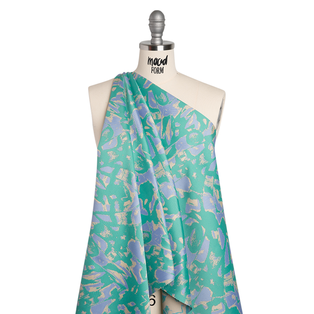 S-teal away to the country in this Sparkling Country Blue, Teal, and Yellow Beige Abstract Markmaking Luxury Polyester Brocade—featuring a soft, smooth hand and voluminous drape.Suggested Projects: Dresses, Skirts, Jackets, VestsContent: 100% PolyesterStretch: NoneOpacity: OpaqueMake your mark with this sparkling country blue, teal, and yellow beige luxury brocade. Softer and smoother than your typical brocade, it glistens under the light, effortlessly suiting both casual and formal attire. With a voluminous drape and no stretch, it lends itself wonderfully to stunning ball gowns, circle skirts, structured jackets, and spiffy vests. For extra luxury, we suggest lining this fabric.