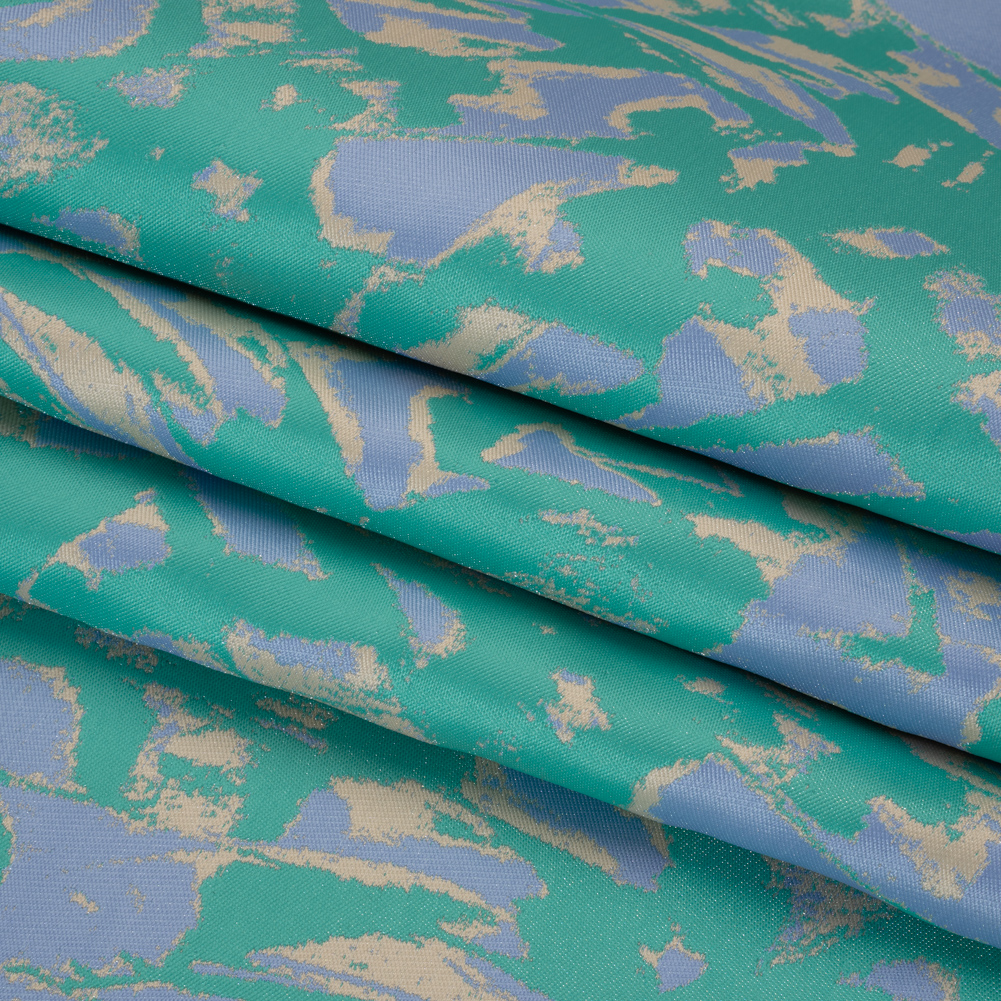 Luxury Polyester Brocade - Sparkling Country Blue, Teal, and Yellow Beige Abstract Markmaking
