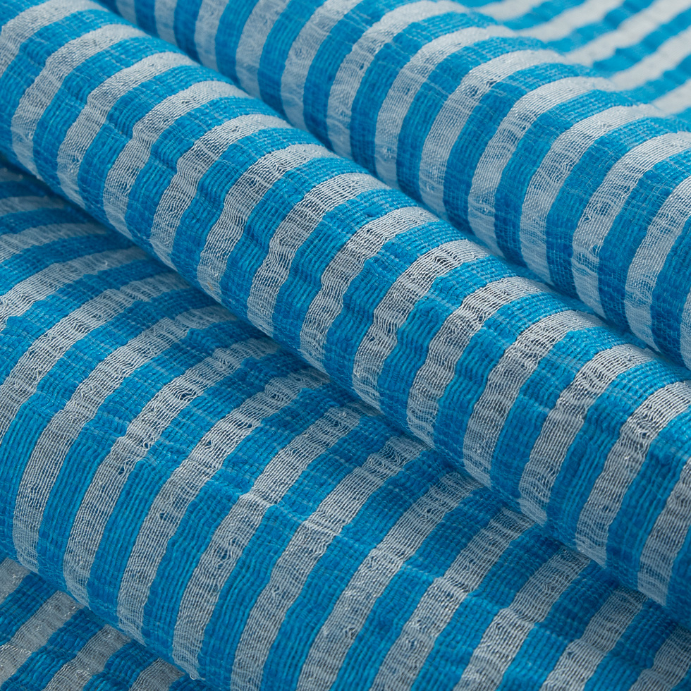Malibu Blue/White Candy Striped Crinkled Organdy