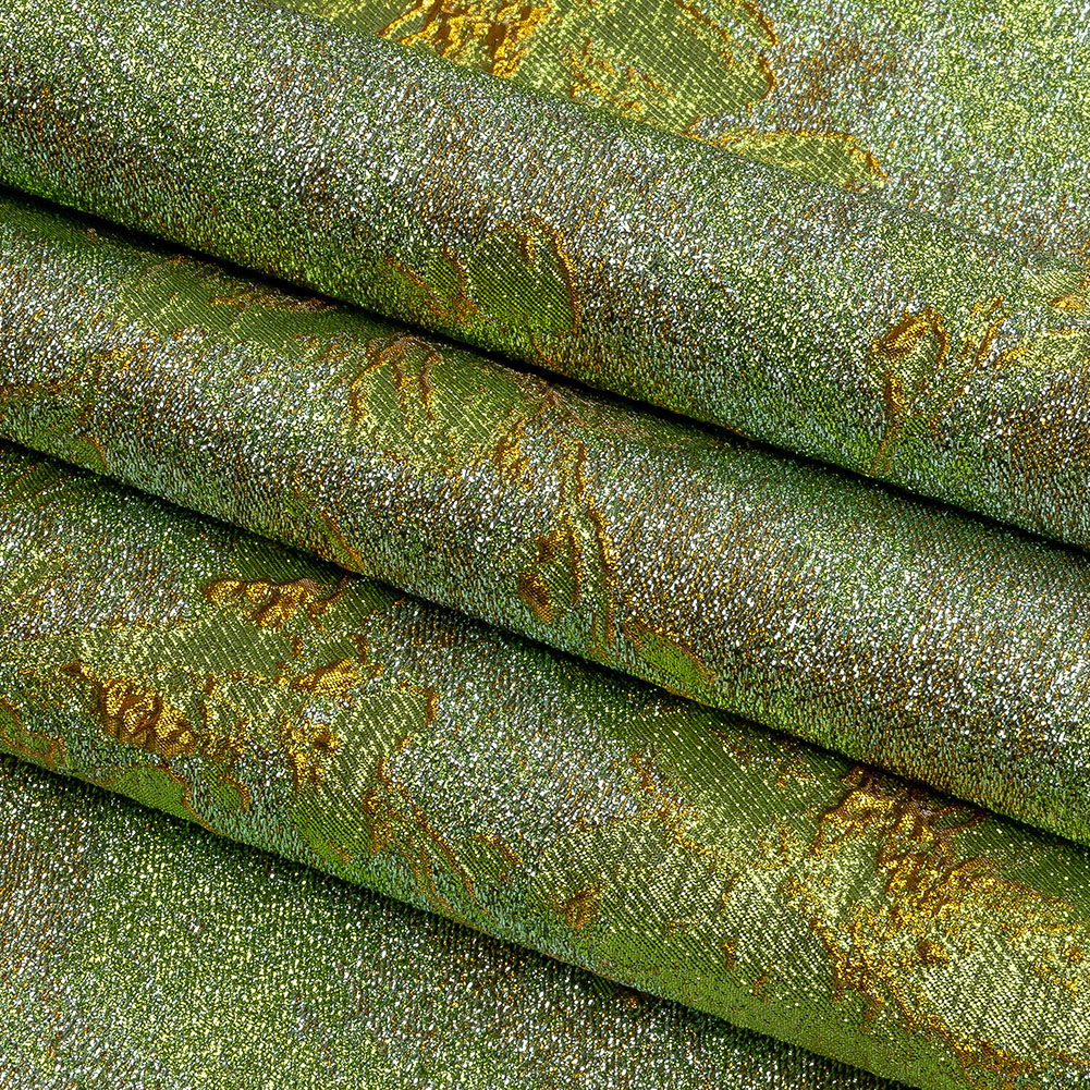 Metallic Aqua, Lime and Solar flare Crackled Floral Luxury Brocade