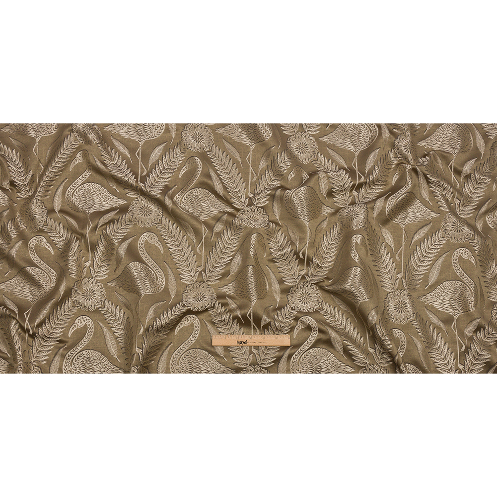 Metallic Drapery Jacquard - Truffle Flamingos and Flowers - British Imported