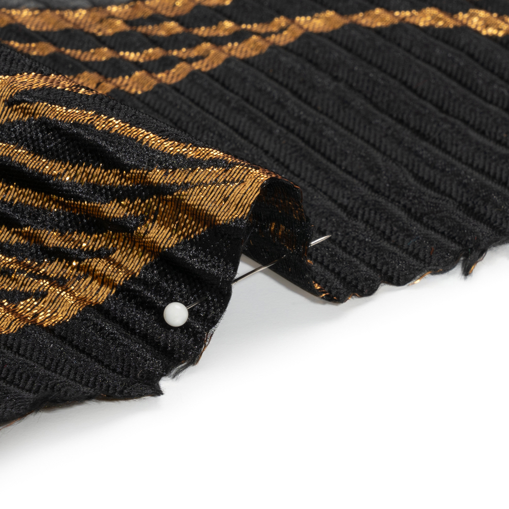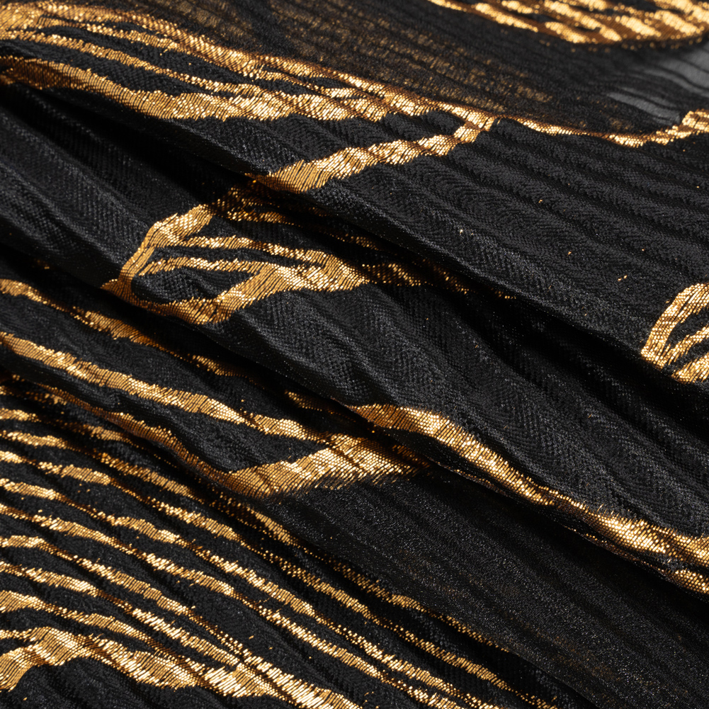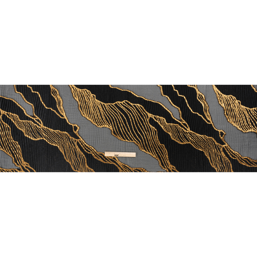 Metallic Gold and Black Abstract Formations Ribbed Burnout Luxury Brocade