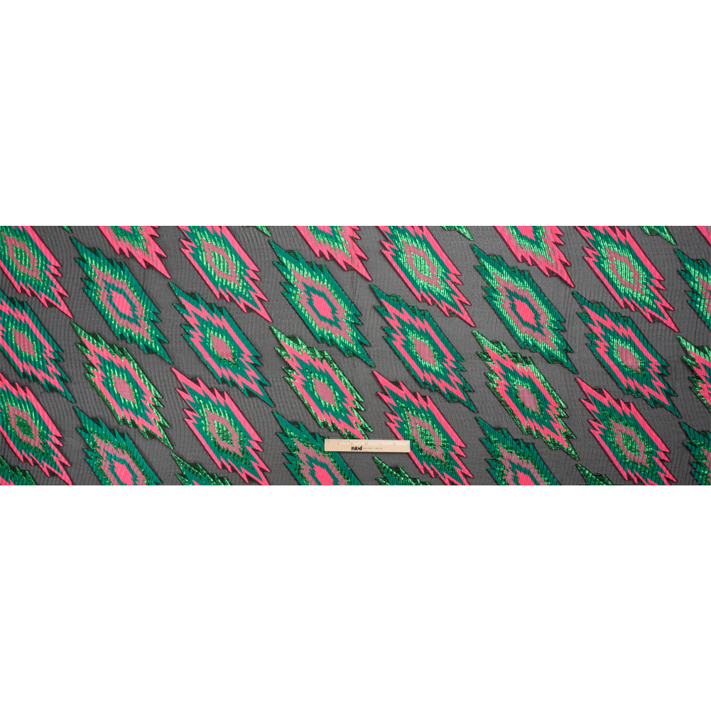 Metallic Green, Hot Pink and Black Exploding Stars Ribbed Luxury Burnout Brocade