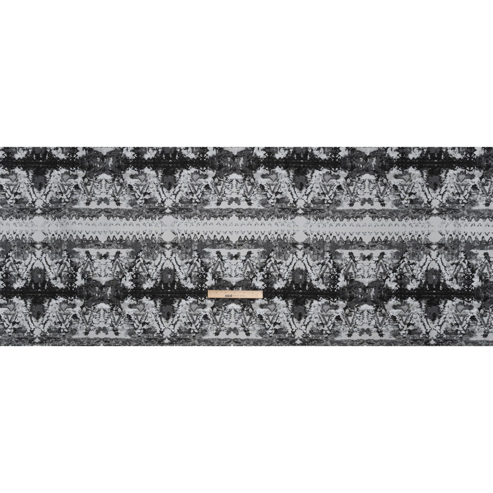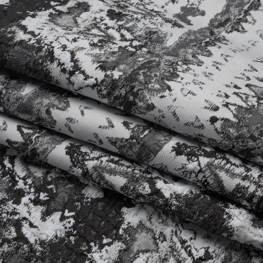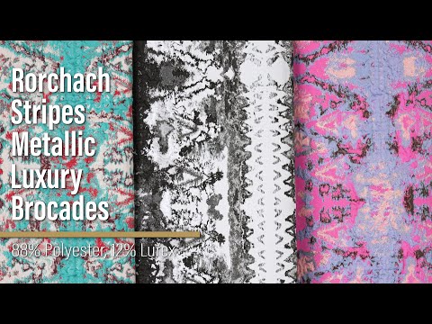 You’ll make the best-dressed list when you wear this Black, White and Gray Rorschach Stripes Metallic Luxury Brocade—featuring a tactile hand and semi-structured, voluminous drape.Suggested Projects: Dresses, Skirts, Jackets, VestsContent: 88% Polyester, 12% LurexStretch: NoneOpacity: OpaqueWhat design possibilities do you see atop this metallic luxury brocade? Woven with additional weft threads, this brocade has a dimensional face; the white background has a ribbed texture, hosting raised black, white, and gray stripes and splatters—inspired by abstract Rorschach test inkblots. Semi-structured and voluminous, the drape lends itself wonderfully to stunning ball gowns, circle skirts, structured jackets, and spiffy vests. For extra luxury, we suggest lining this fabric.
