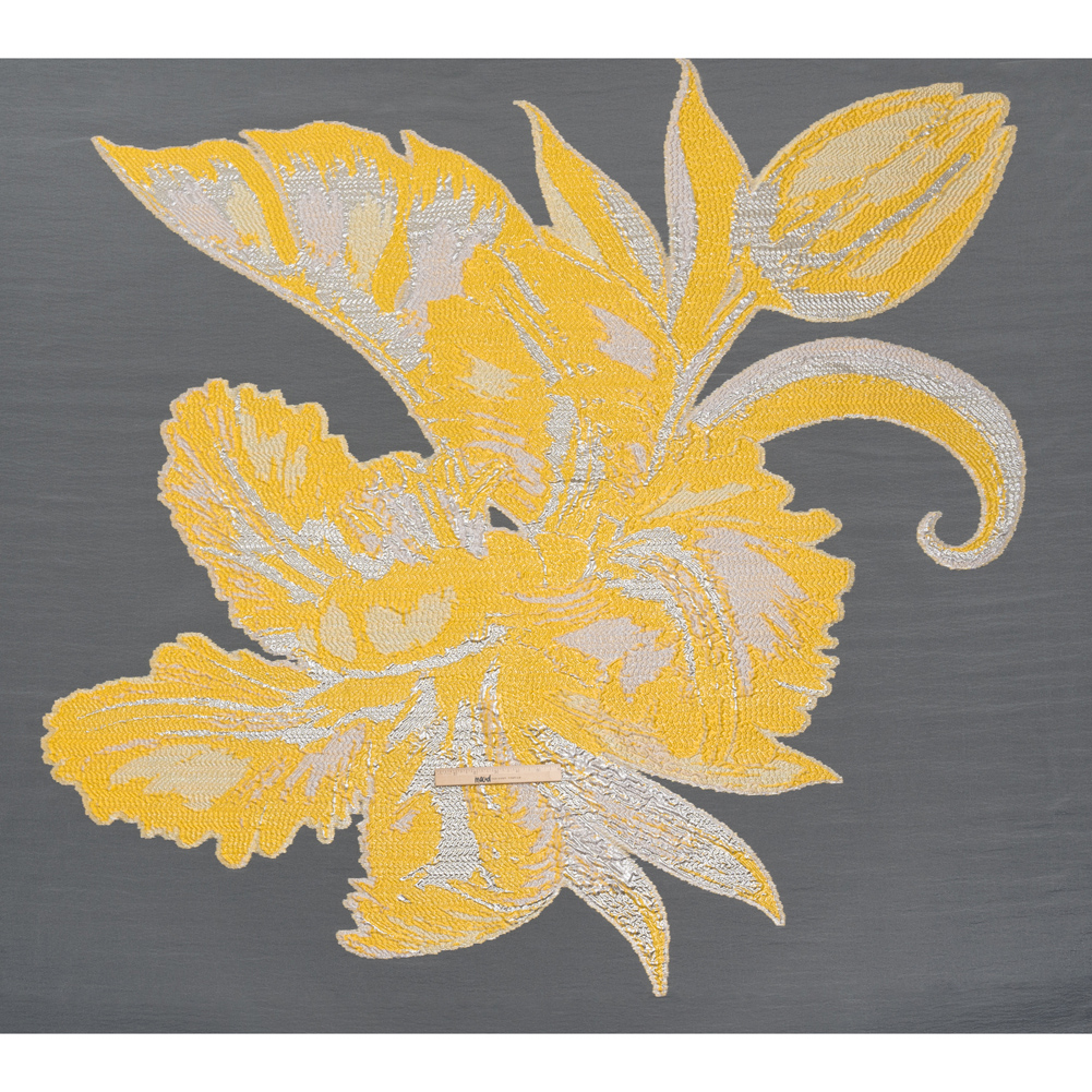 Metallic Luxury Burnout Brocade Panel - Sunshine Yellow and White Painterly Lily
