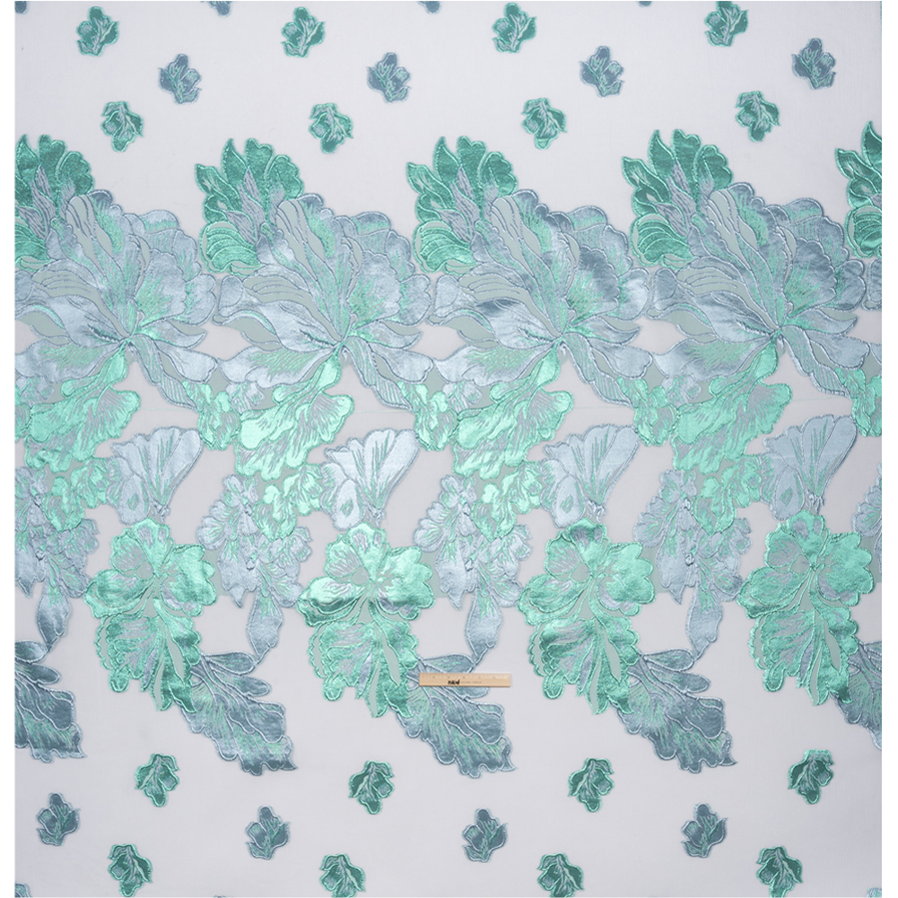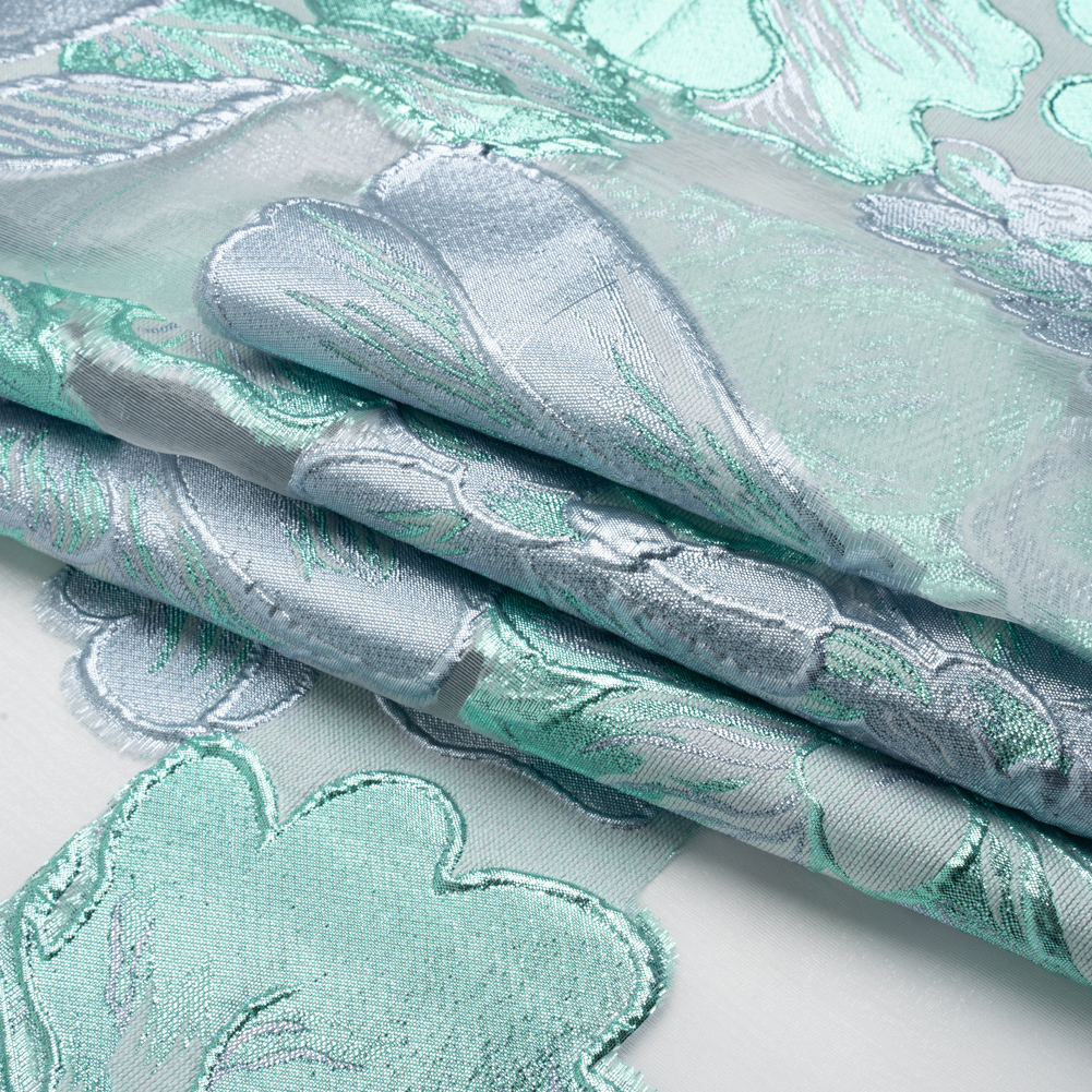Metallic Turquoise, Baby Blue and White Floral Luxury Burnout Brocade Panel