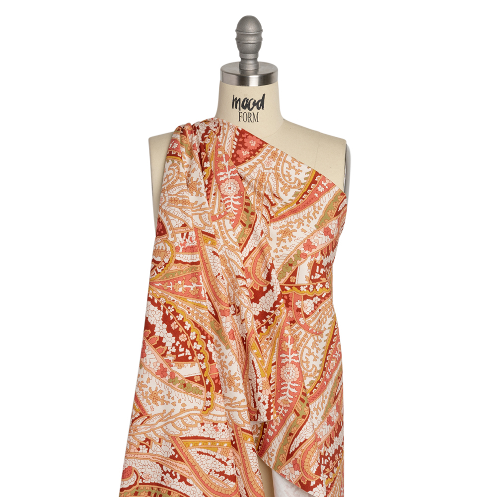 Explore our Mood Exclusive Brown Through the Thicket Stretch Brushed Cotton Twill, a massive entanglement of vines, tendrils, and petals where inspiration hides in shades of pink, green, white, and yellow. Lightweight and comfortable, the cotton fibers have been brushed to exaggerate their texture, bringing a slightly fuzzy feeling to the otherwise dry hand. The crisp drape appeals to semi-structured silhouettes, like boxy button-ups and shift dresses, and the 15% weft-wise stretch inspires flexible chinos and tailored blazers. Slightly translucent, a lining may be desired for added opacity and structure.