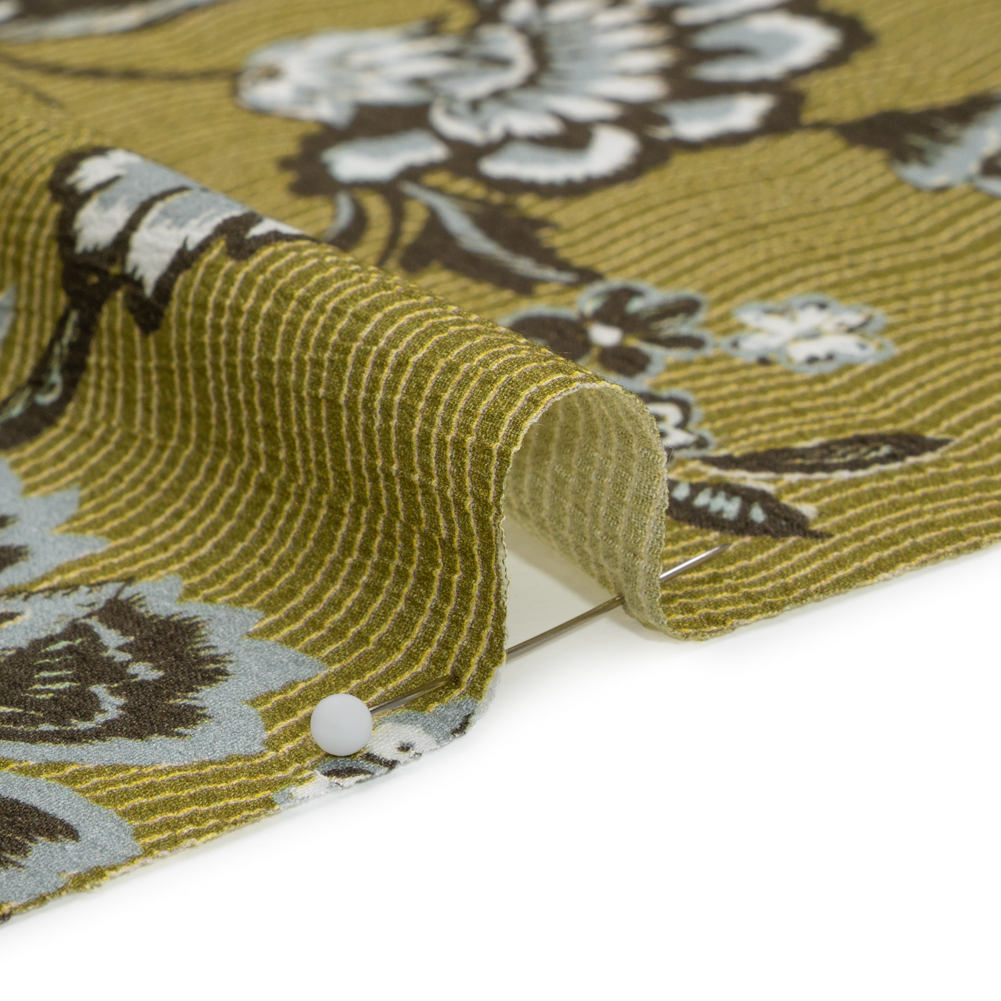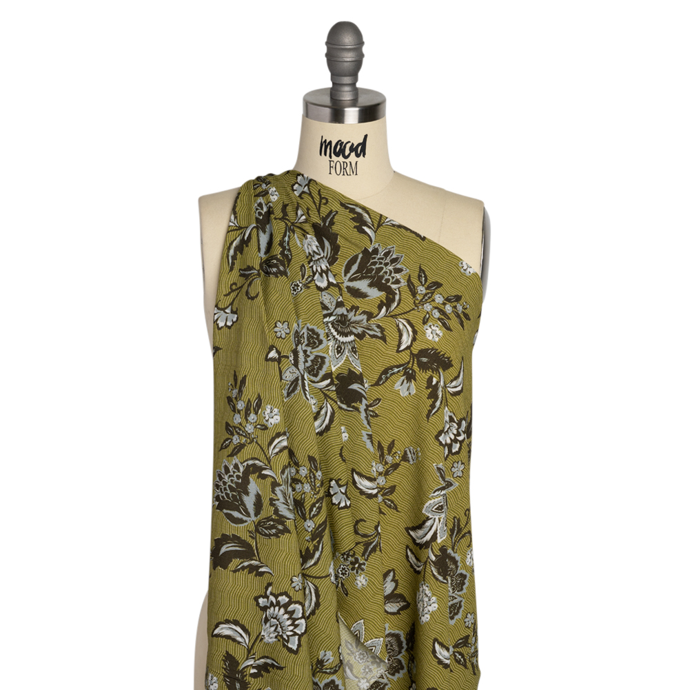 This Mood Exclusive Easy to Please Crinkled Gauzy Viscose Crepe is pleased to be your next sewing adventure. Happy to be surrounded by lush greens and spring air, the gray, light blue, and white flowers spread their petals like a welcoming embrace. The crinkled hand brings texture to lightweight jackets and airy pants; the supple drape excels in sundresses and button-down shirts (and so much more!). Plus, woven with sustainably-sourced viscose, this fabric looks good on you while doing good for the environment. Semi-transparent—a lining may be desired.