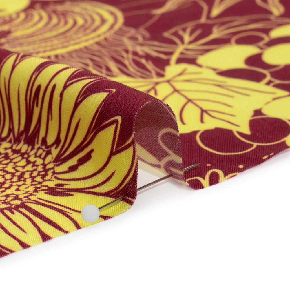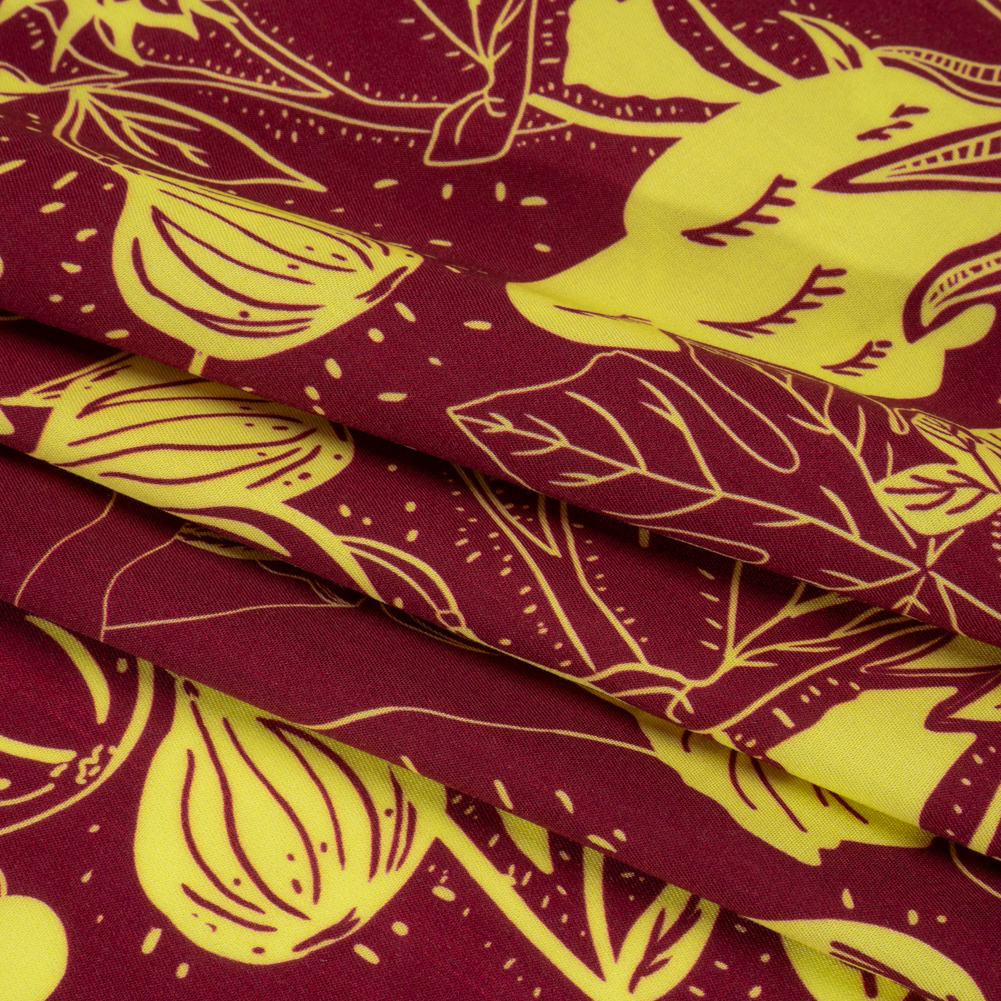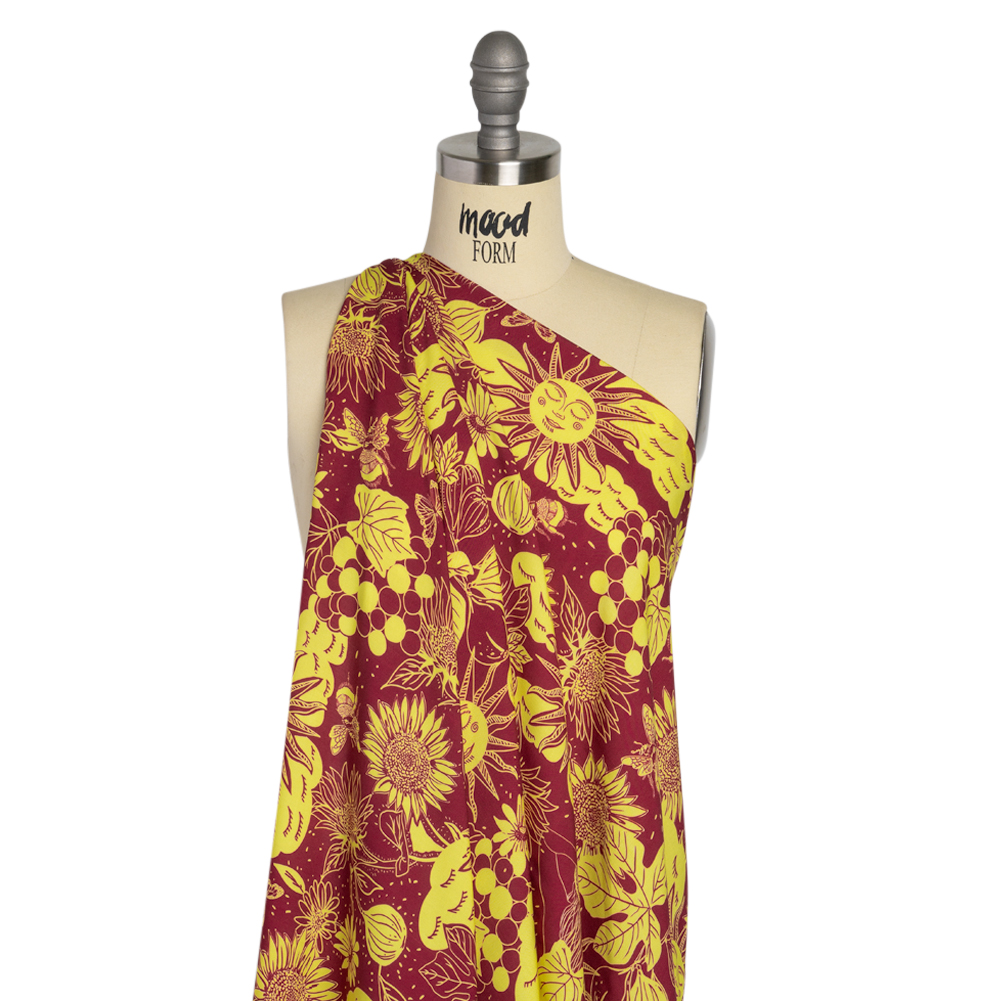 With your feet in the cold soil and the bees buzzing through the air, feel connected with nature with our Mood Exclusive Magenta Your Solar Self Viscose Twill. Figs, grapes, and sunflowers grow in the drowsy light of the Tuscan sun, coloring the face in magenta and chartreuse. This 100% viscose fabric features a smooth face, lightweight drape, and cool hand, resting comfortably on your skin as it follows your daily movements with a graceful fluidity. Casual and semi-casual looks are instantly elevated by its crisp look, inspiring sewing projects like airy blouses, button-ups, palazzo pants, and more. Translucent, a lining may be desired.