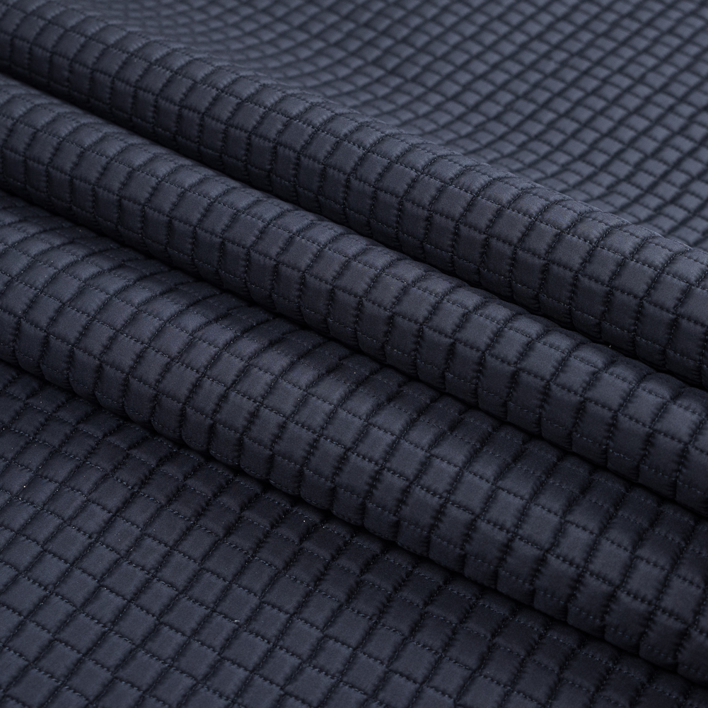Should winter be approaching, fear not for the cold with this Navy Square Quilted Coating in hand. Complete with insulated foam encased between a fusible backing and its quilted face, this coating is sure to withstand the colder climates to come. With a thicker hand, weighing 230 gsm and complete with a full bodied drape, this material is ideal for outerwear applications such as ski jackets, puffer coats, and bomber shells. Water repellent, this material can even withstand a touch of rainfall. Although completely opaque with a soft backing, we recommend lining this material for a completed look. WARNING: Cancer and Reproductive Harm - www.P65Warnings.ca.gov.
