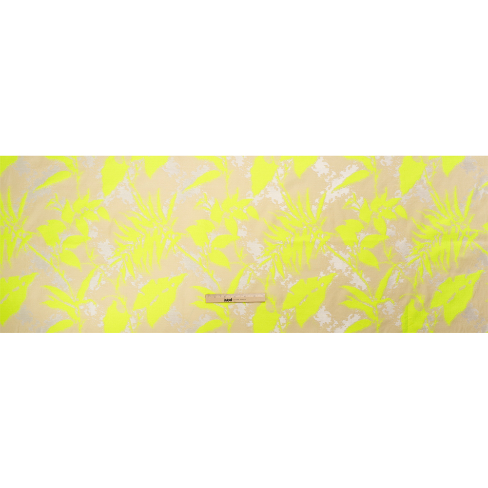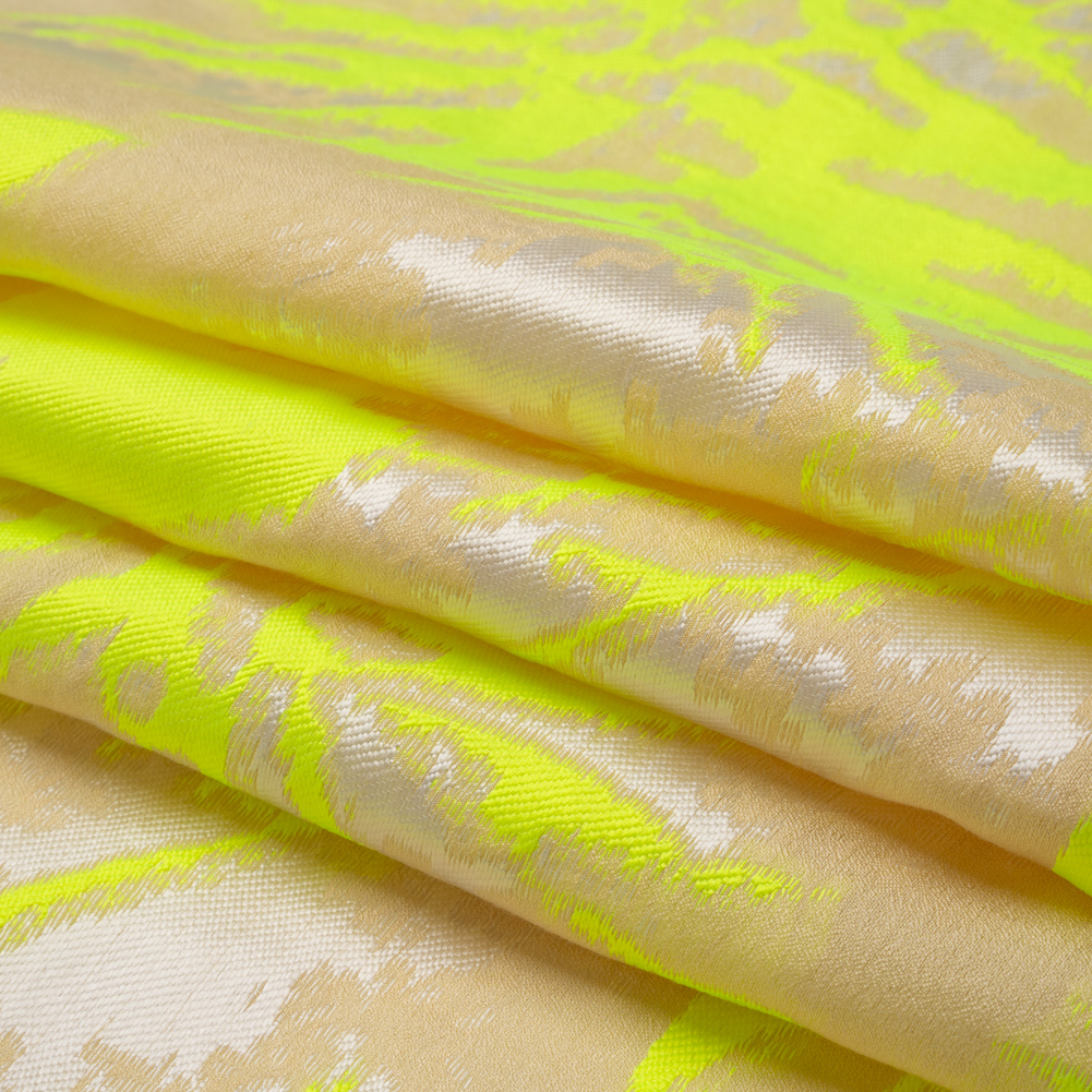 Neon Yellow, White and Beige Soft Leaves Lightweight Polyester and Viscose Luxury Brocade