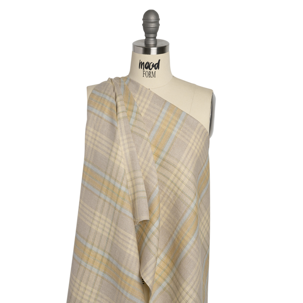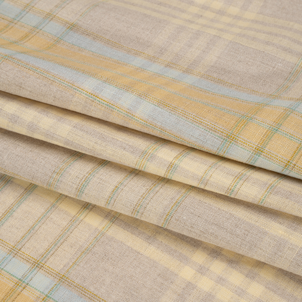 Oatmeal, Pale Yellow and Baby Blue Plaid Lightweight Linen Woven